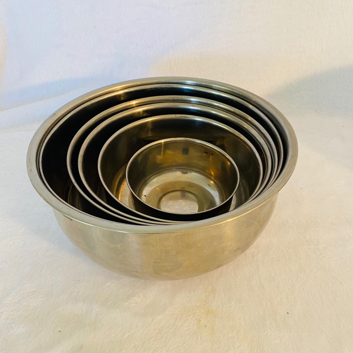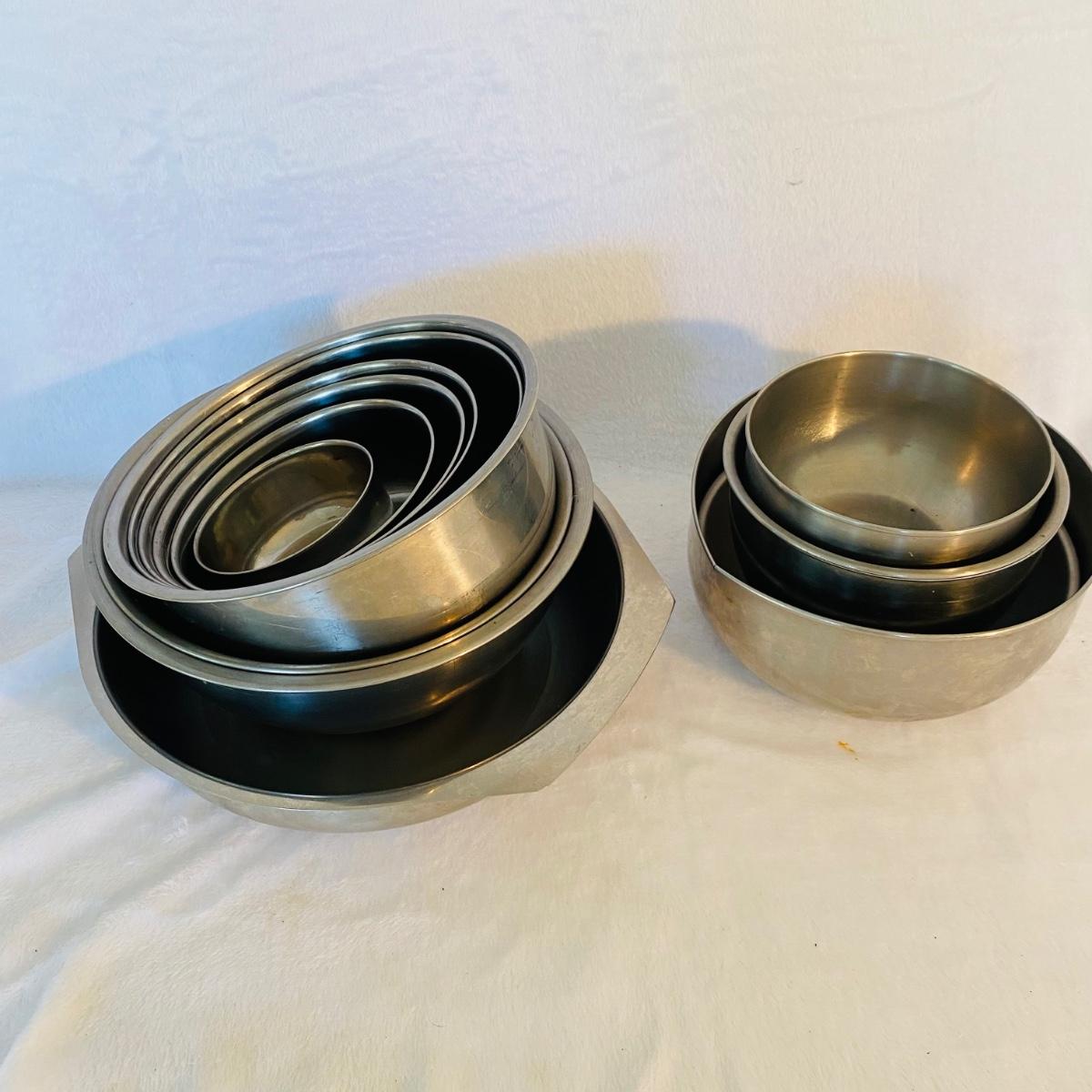 Set of 13 metal mixing bowls. Smallest is 4”D and largest is 11”D. Good condition.