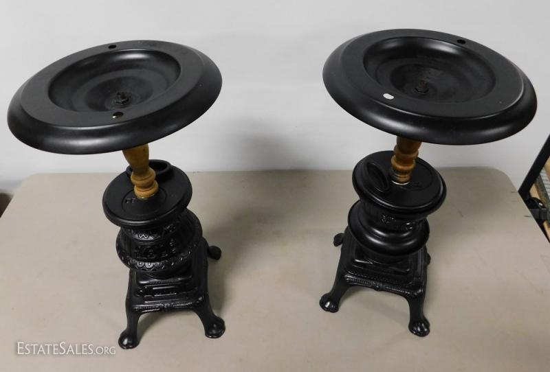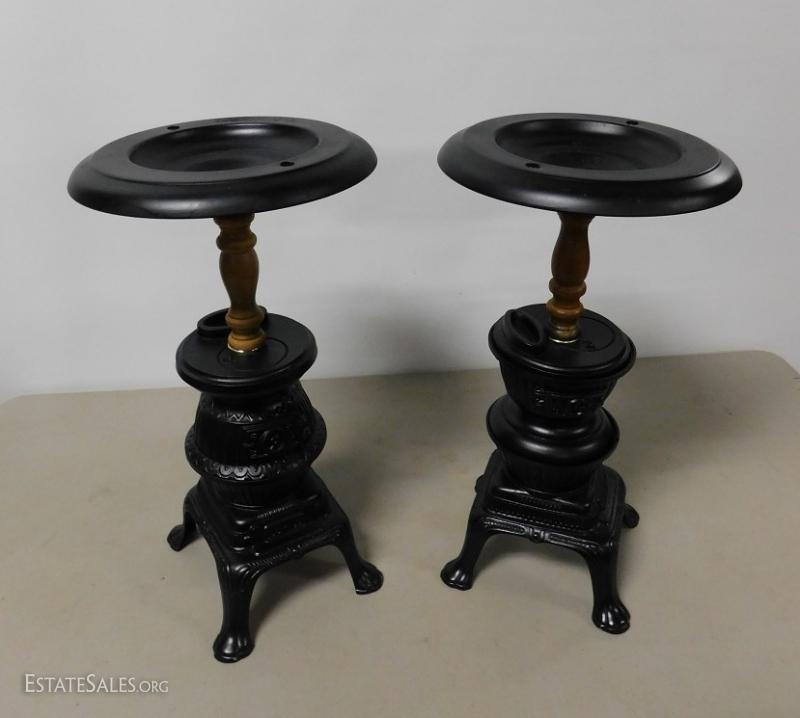 Set of Metal Wood Stove Stands. Nice folded steel lamp or ashtray stands with a wood post insert. Very Clean