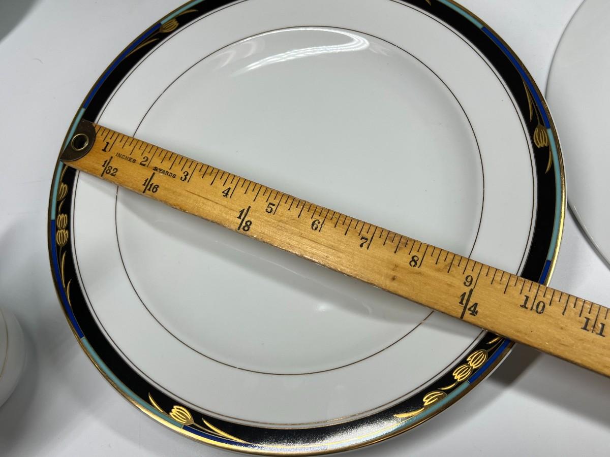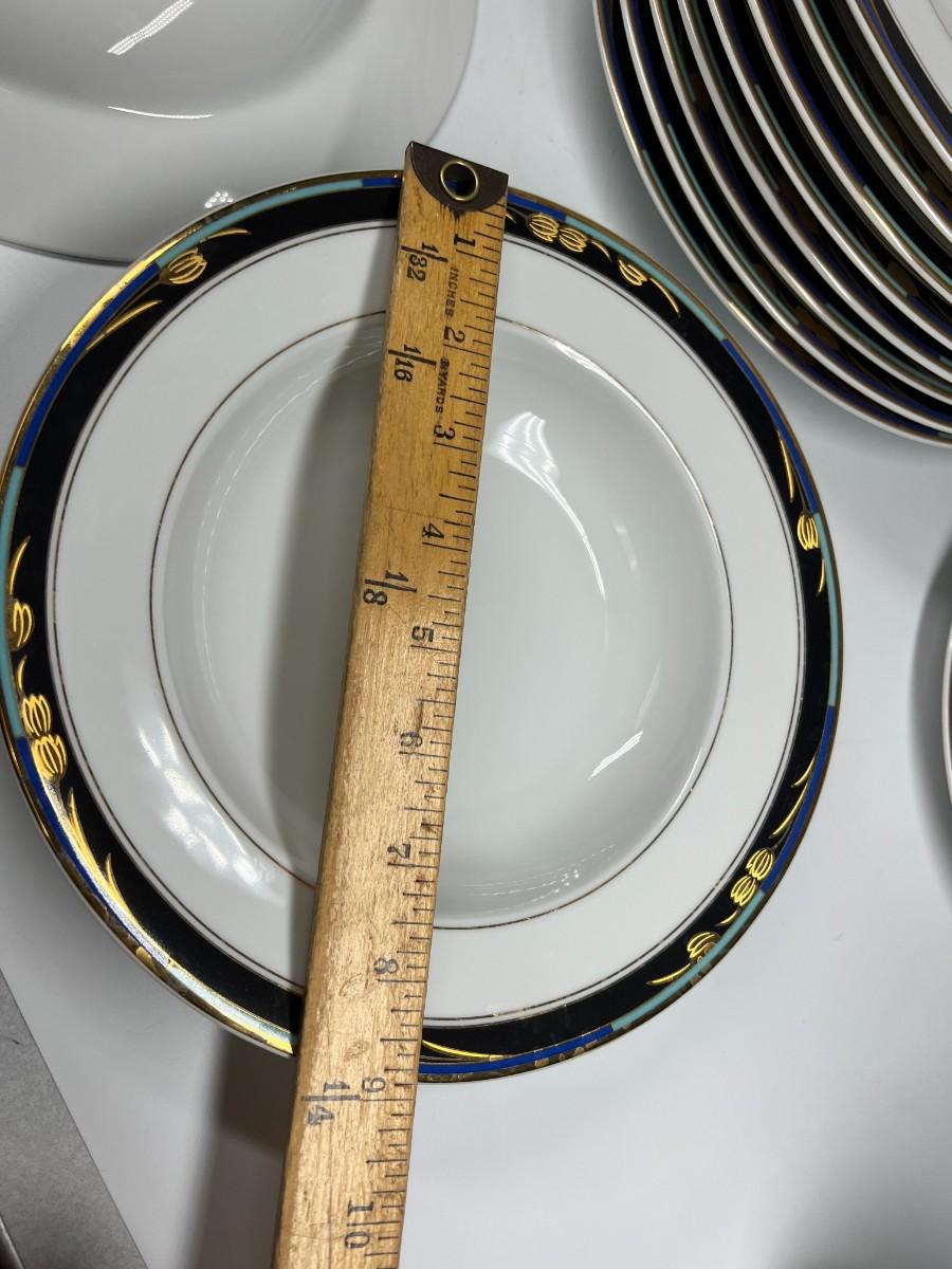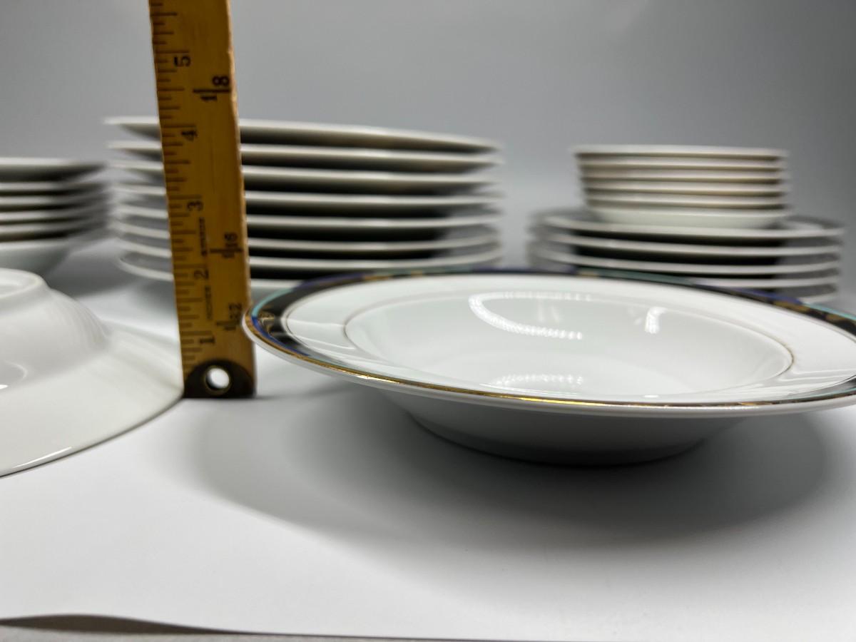 There is some light wear to some of the pieces, but there is no significant damage and is in overall good useable or collectible condition. Comes with 8 tea cups, 8 dinner plates, 8 soup bowls, 5 salad plates, and 6 saucers (35 pieces total). Check pictures for more details and for sizing.