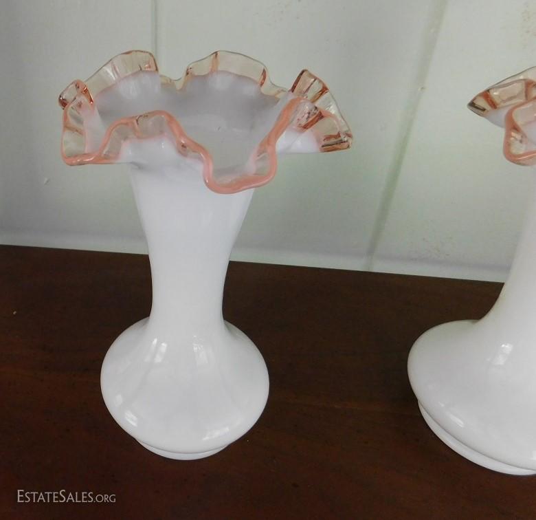 Unmarked Fenton Set of Milk Glass Ruffled Edge Vases
