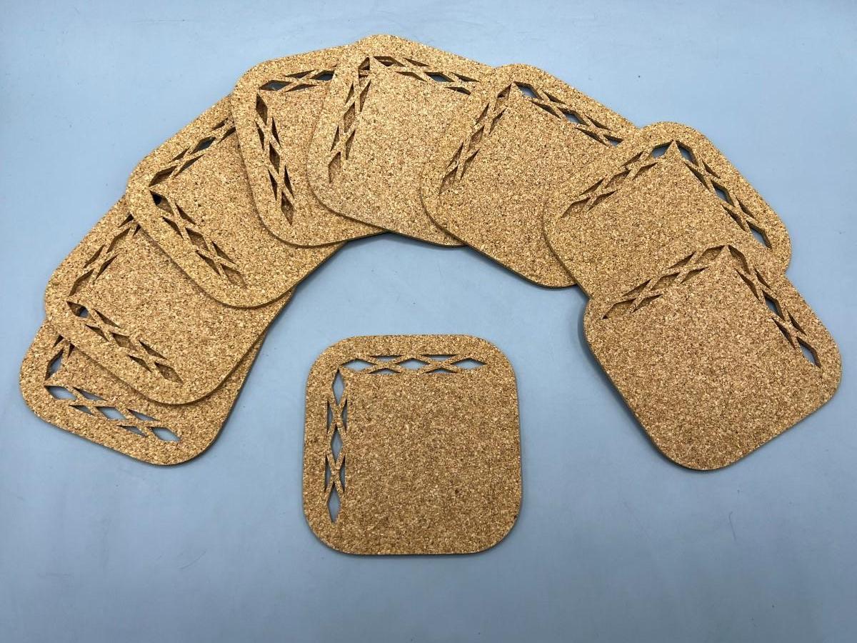 Set of Minimalist Diamond Pattern Design Cork Drink Coasters. Great as is or for crafting projects. Standard 4" coasters size. There is no significant damage to any of the coasters. Check pictures for more details