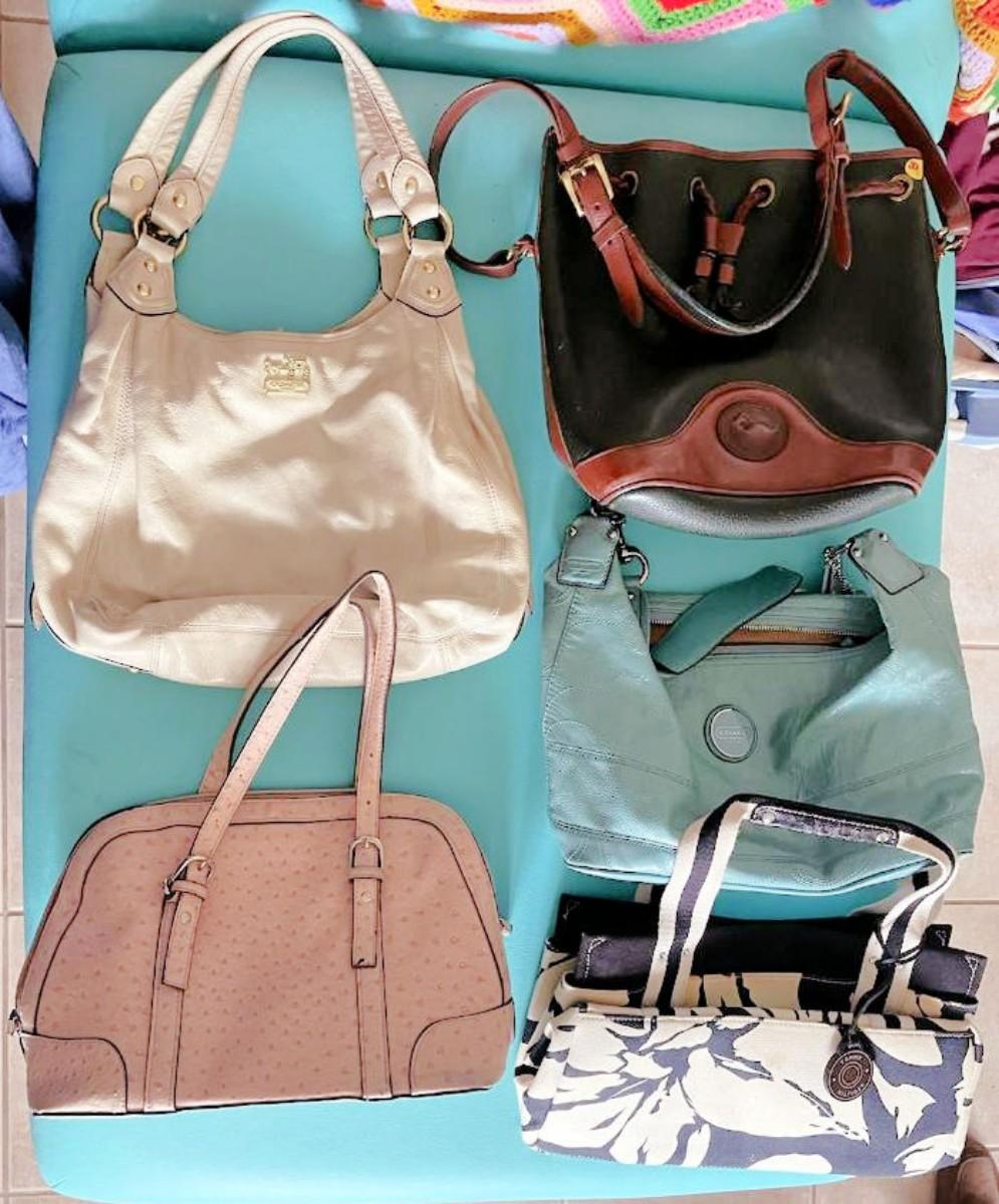 Dooney Burke, Coach, Tommy Hilfger and one other. All are in good shape, but do have a couple of spots from use. See photos