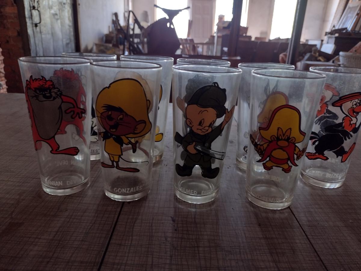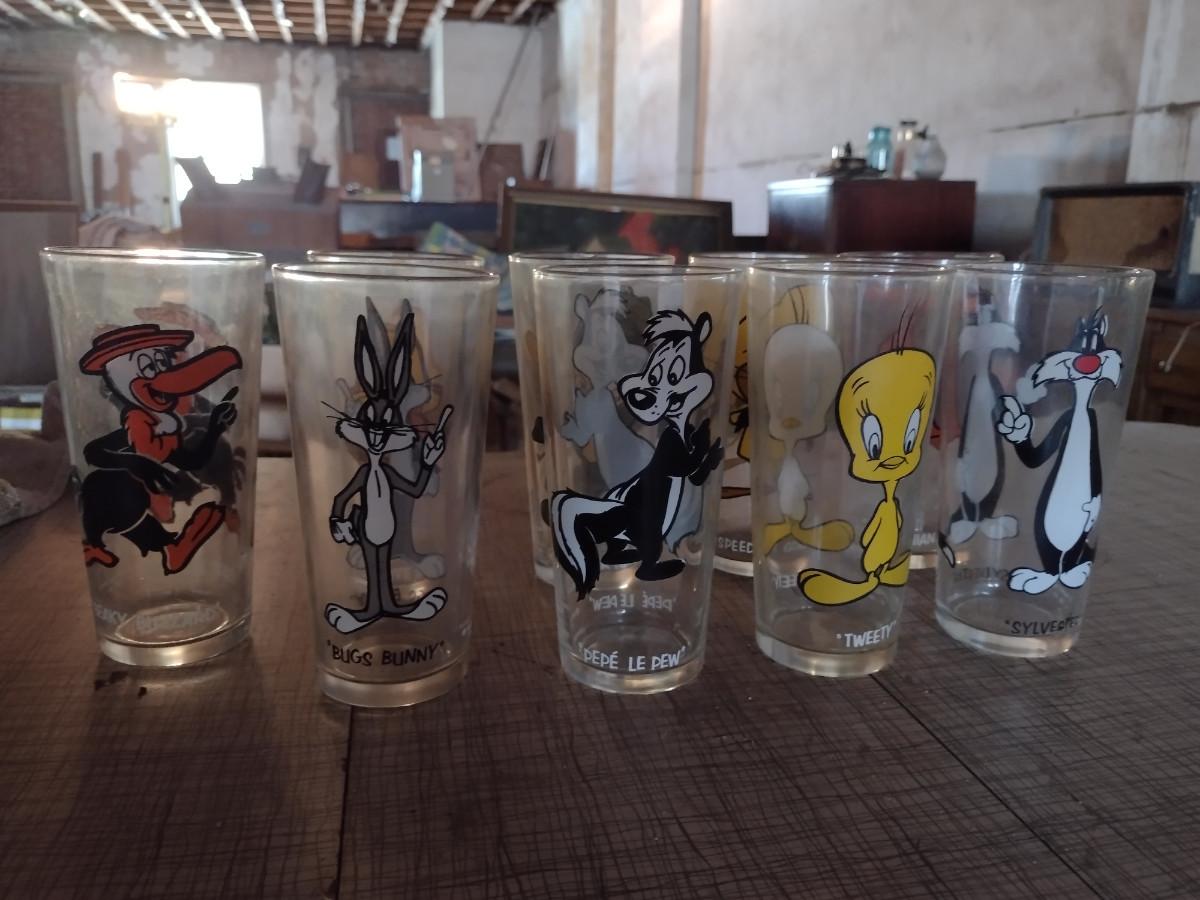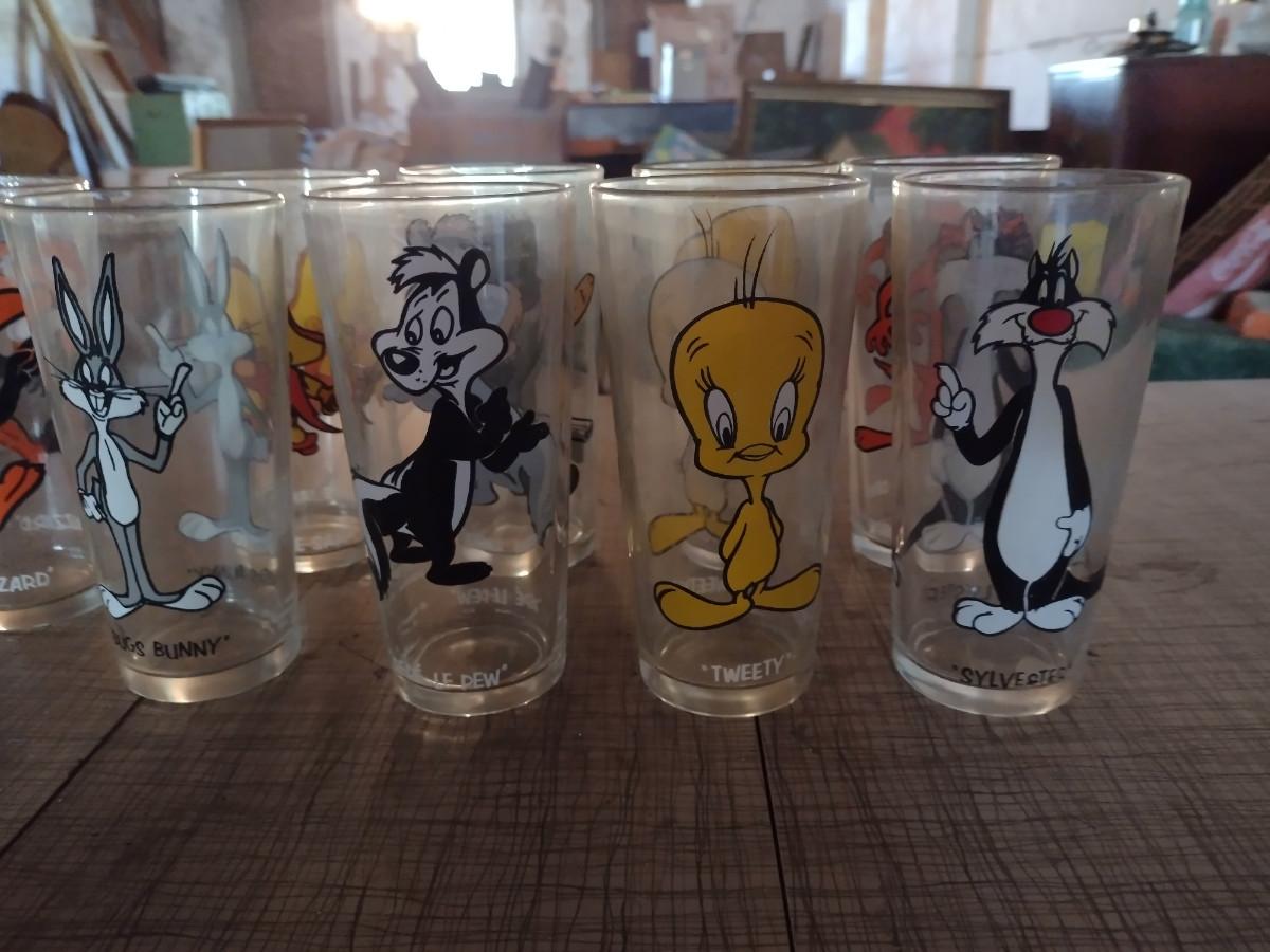 Set of Nine Vintage Looney Tunes Drinking Glasses. Issued by Pepsi in 1973.