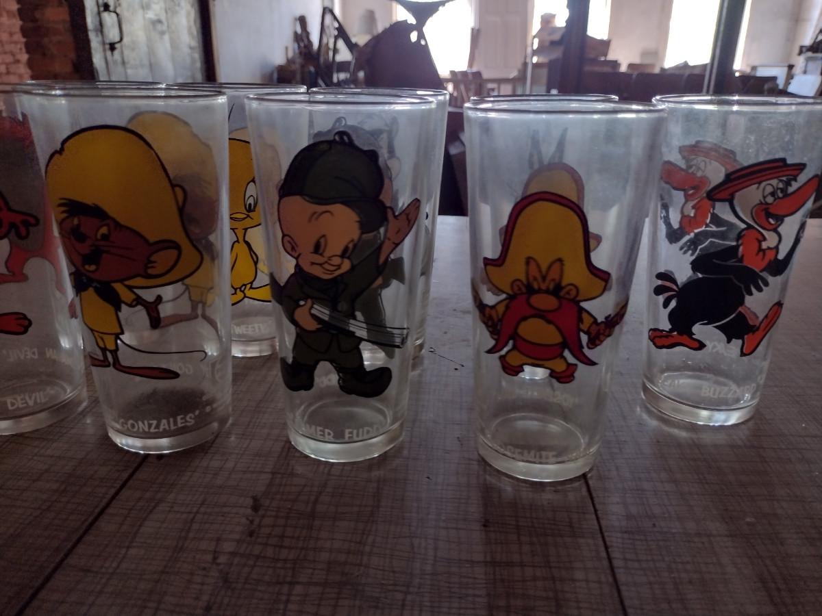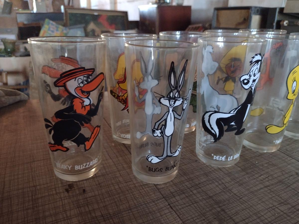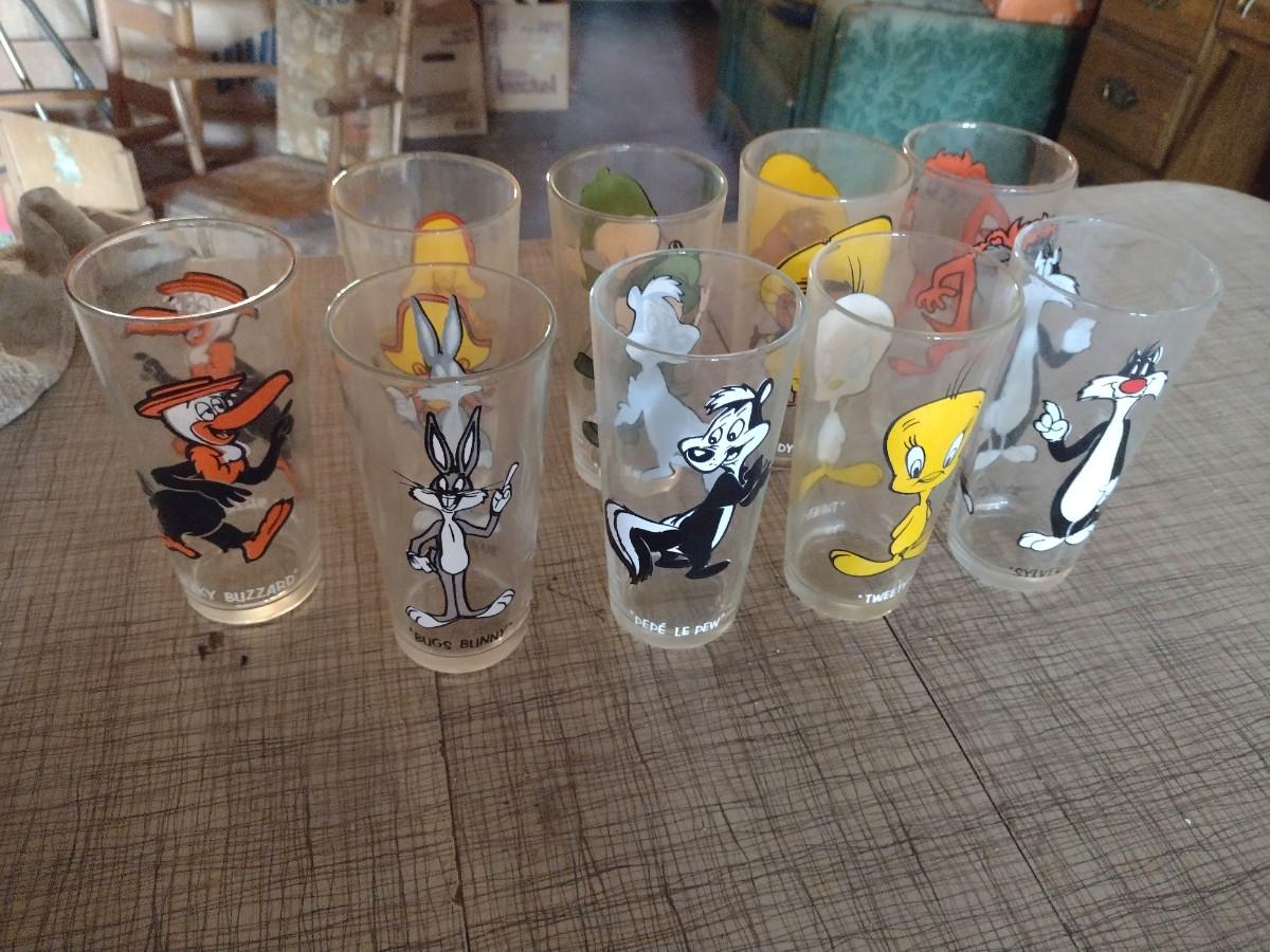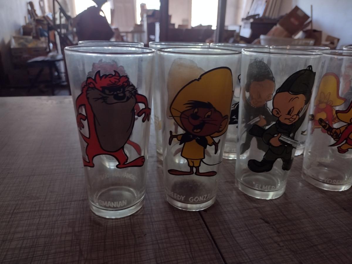 Set of Nine Vintage Looney Tunes Drinking Glasses. Issued by Pepsi in 1973.