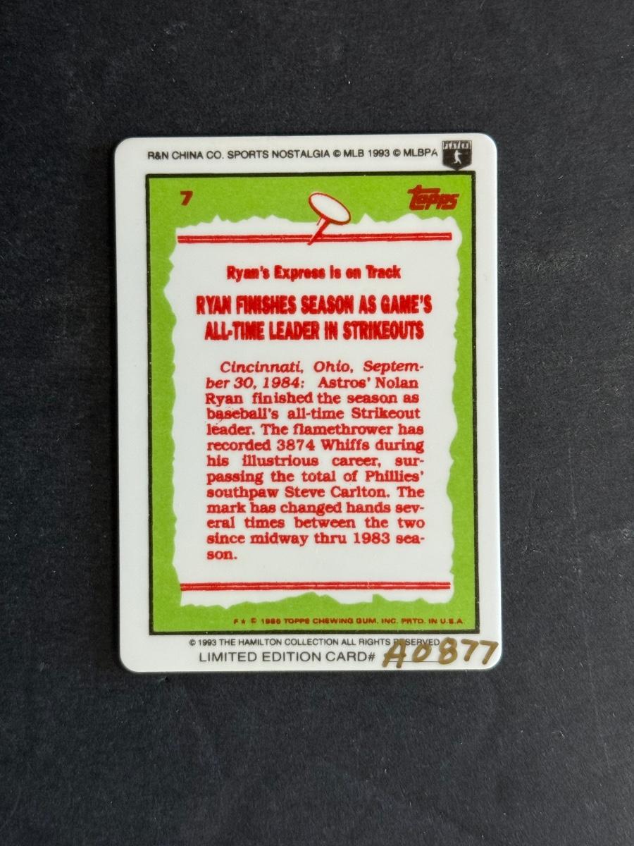Hamilton Collection Nolan Ryan Ceramic Rookie Reprint