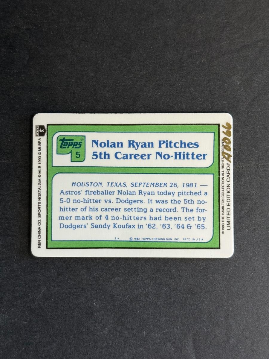 Hamilton Collection Nolan Ryan Ceramic Rookie Reprint