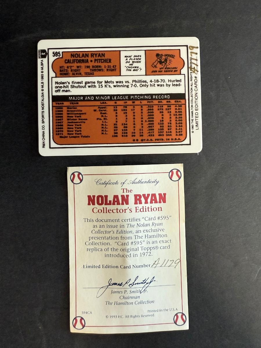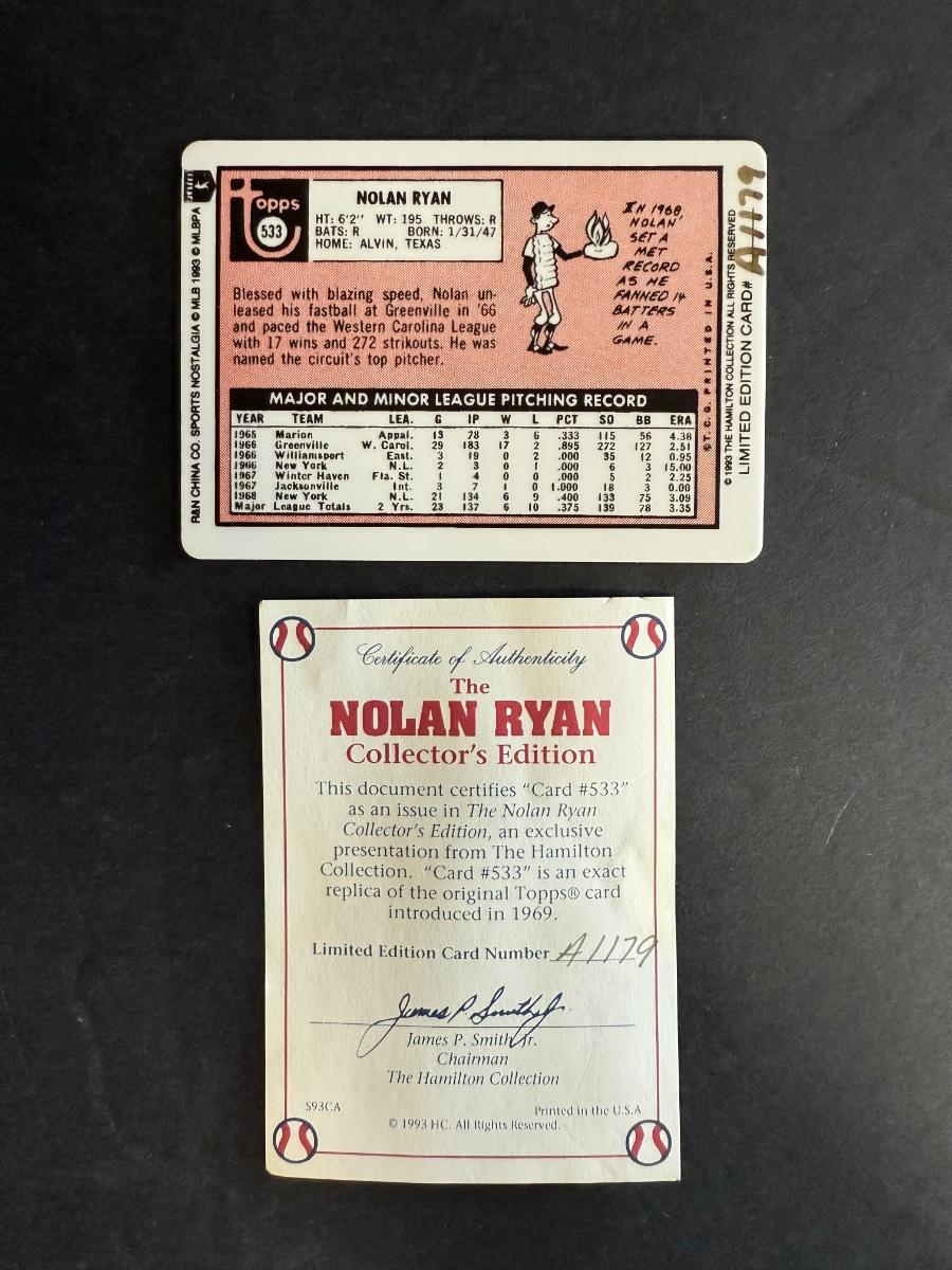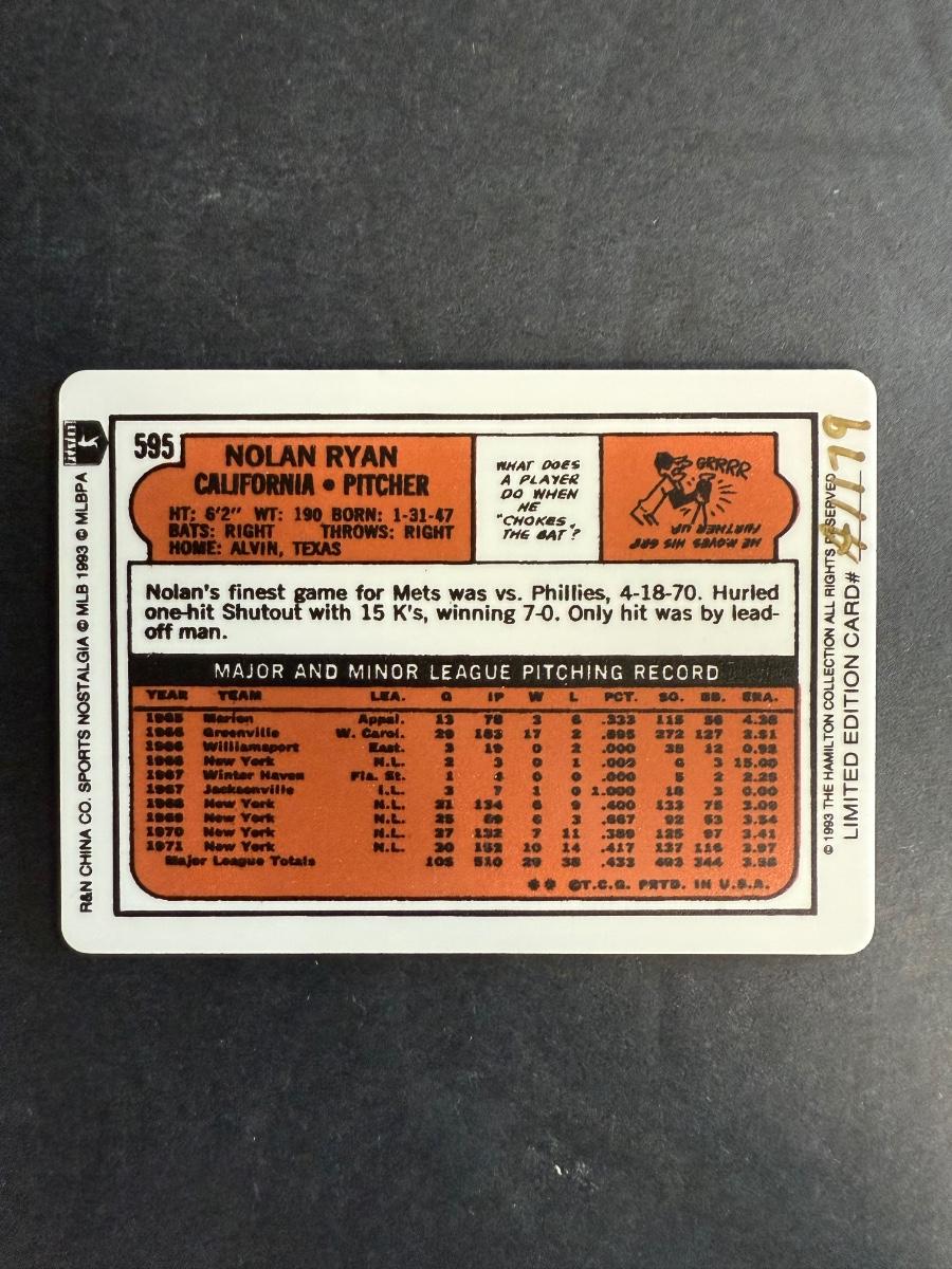Hamilton Collection Nolan Ryan Ceramic Rookie Reprint