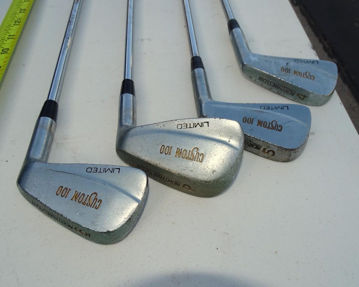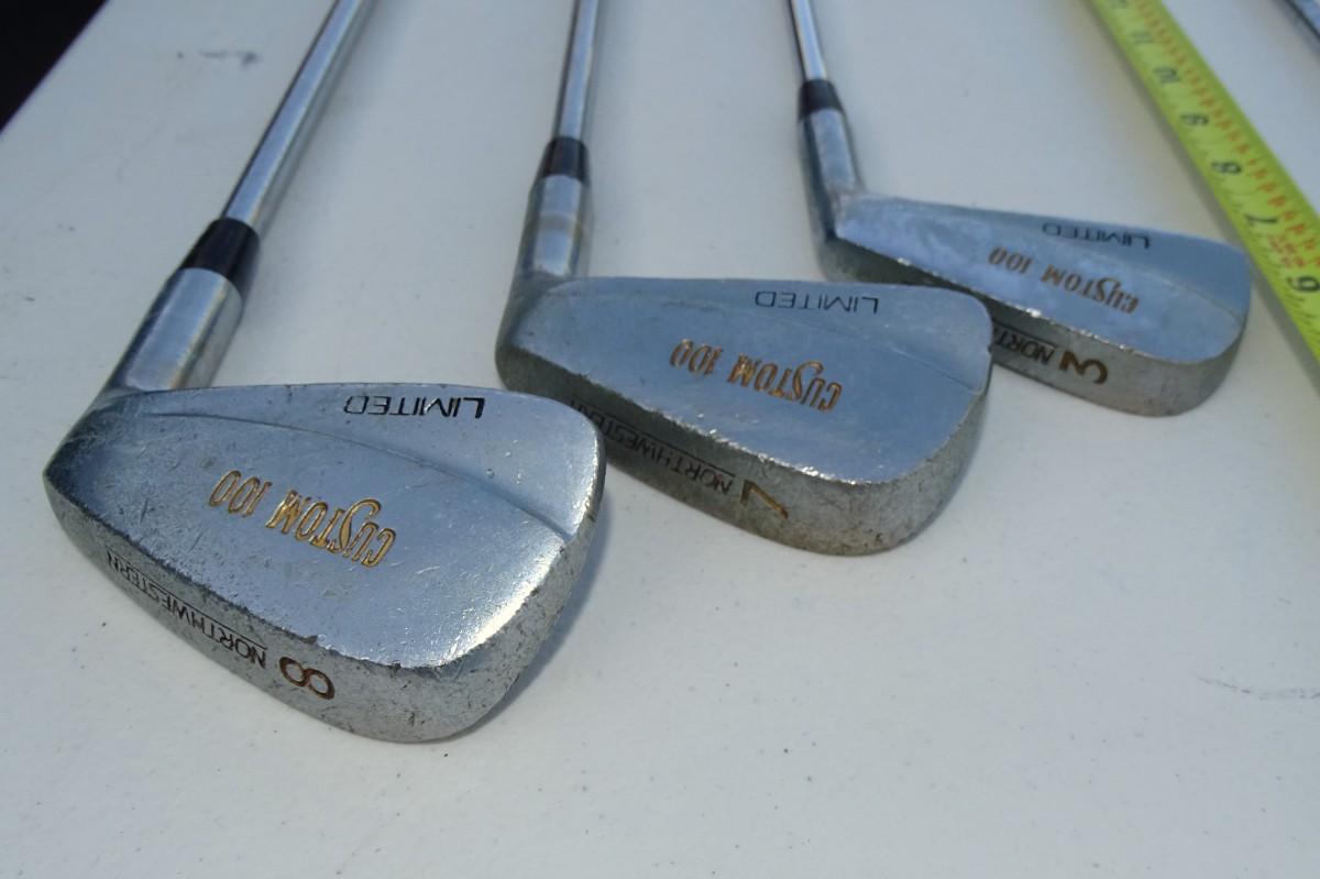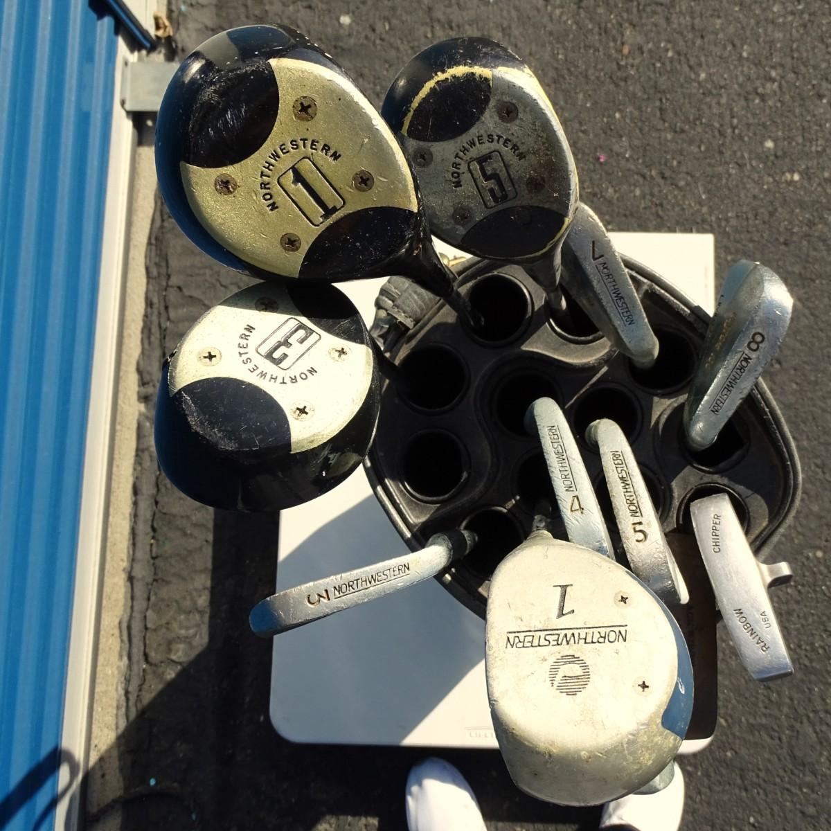 Set of Northwestern Gold Clubs plus bag. Various conditions