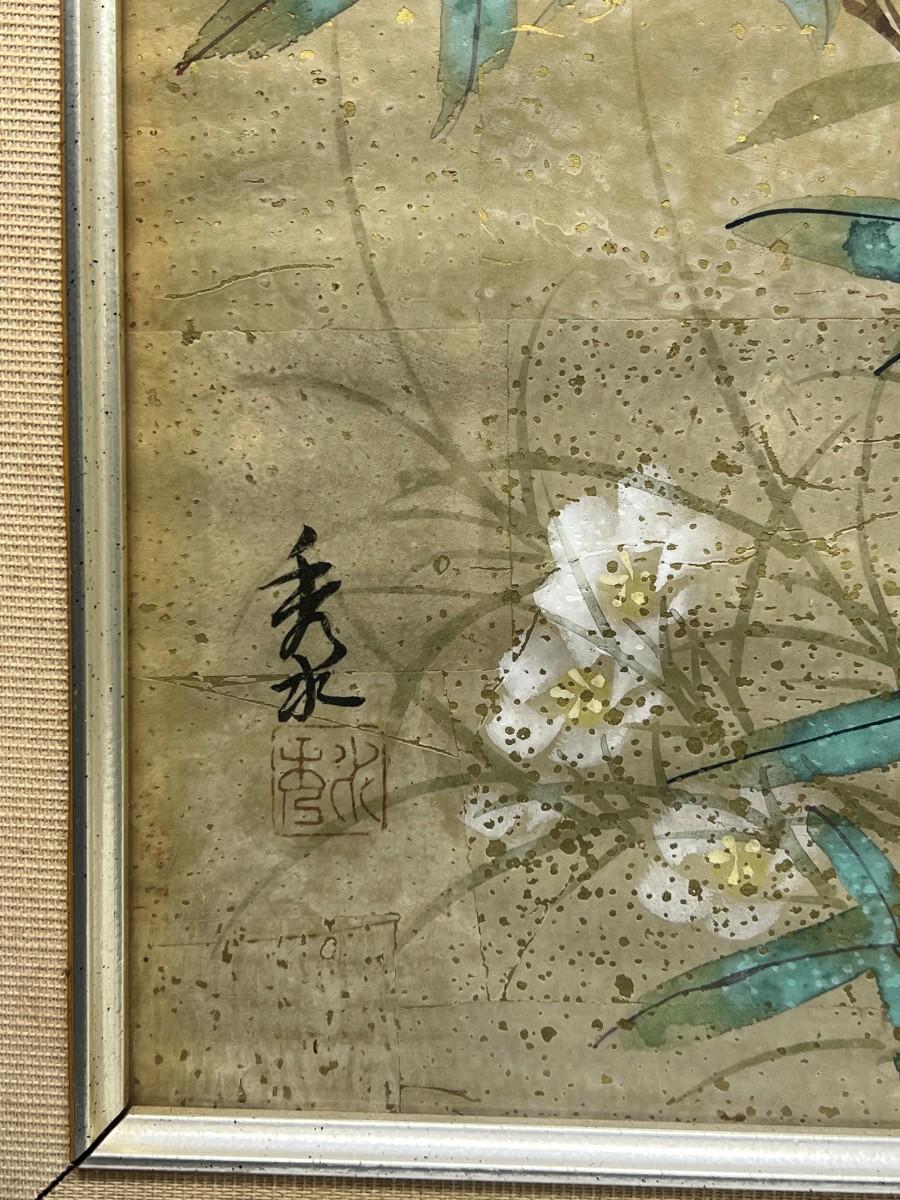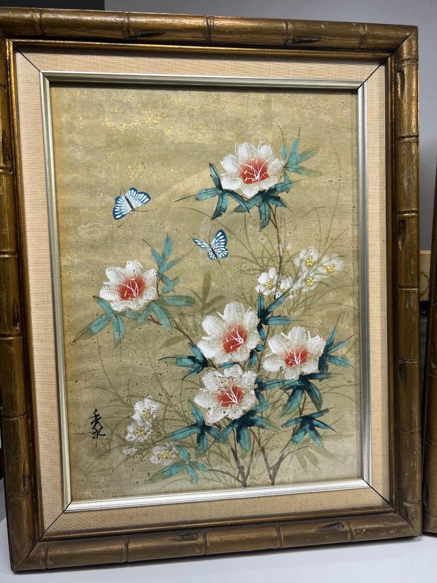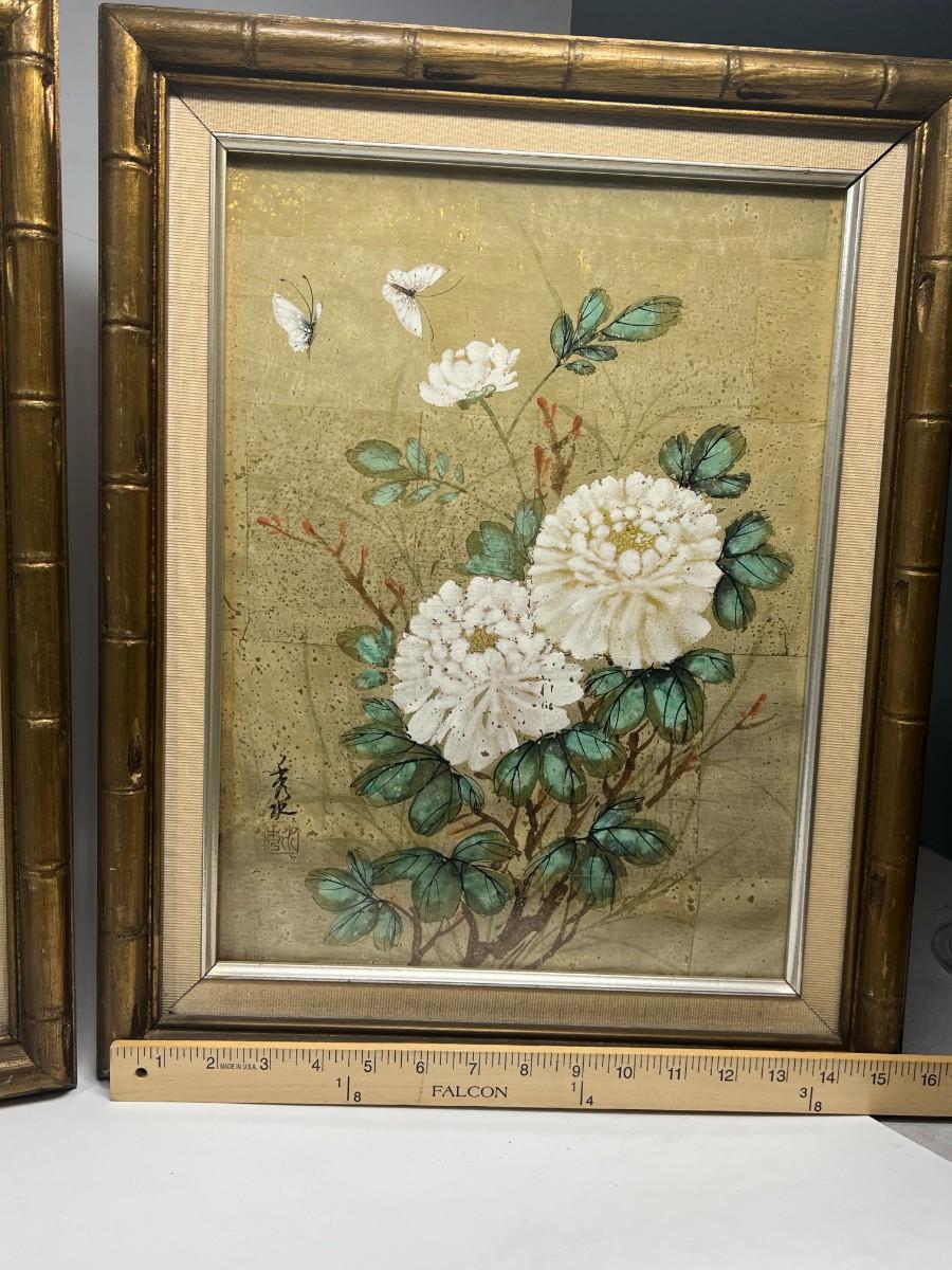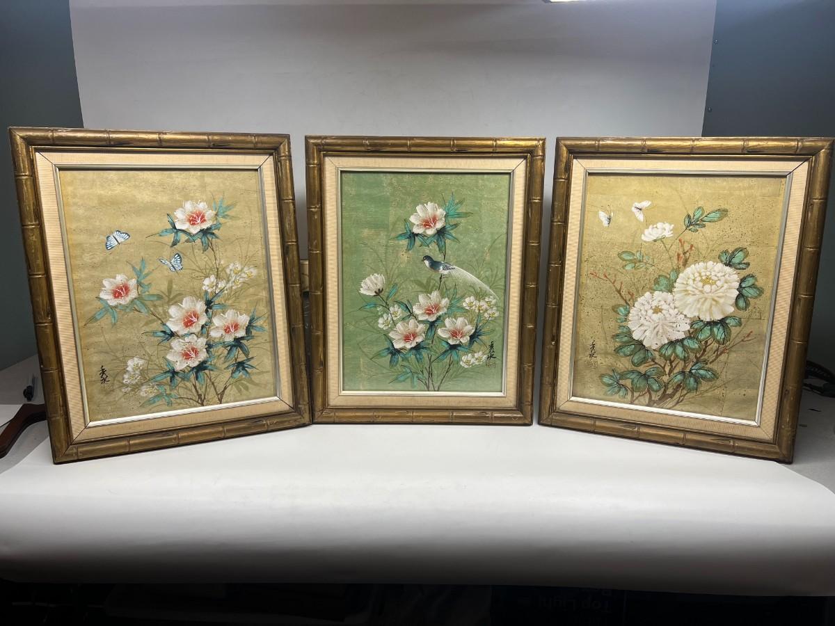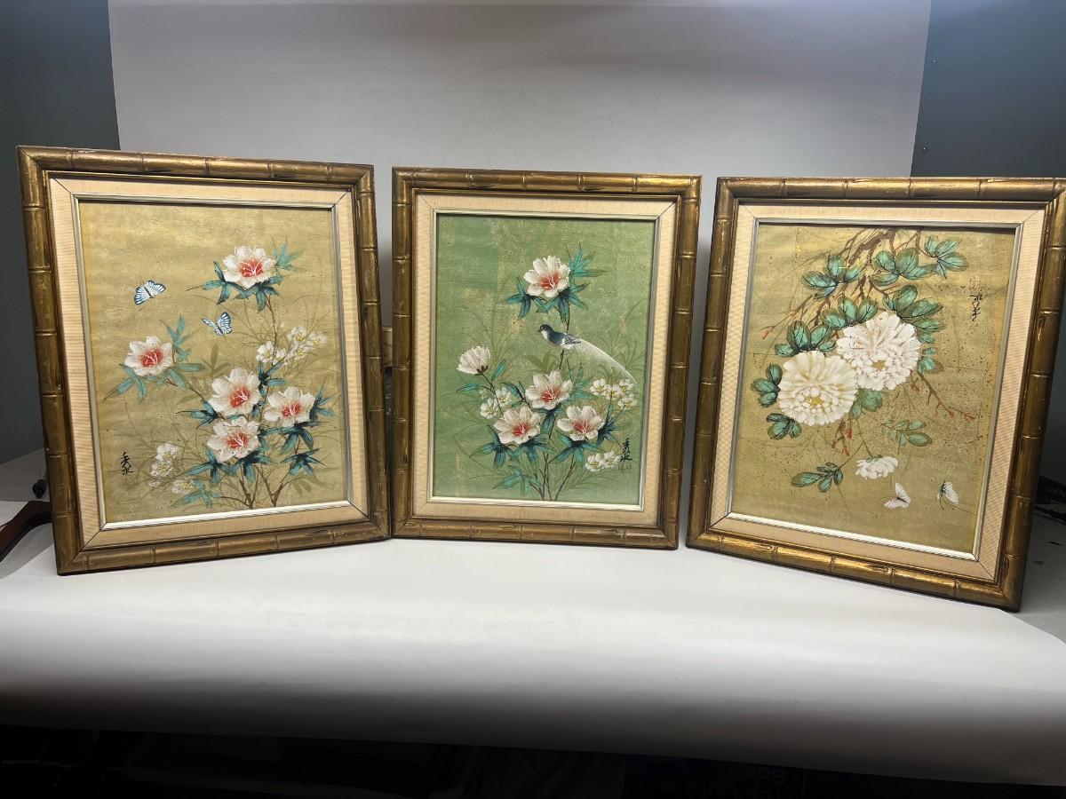 Set of Oriental Framed Gold Bamboo Mid Century Reproduction Art Prints