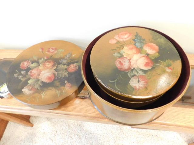 Set of Painted Wood Nesting Hat Boxes