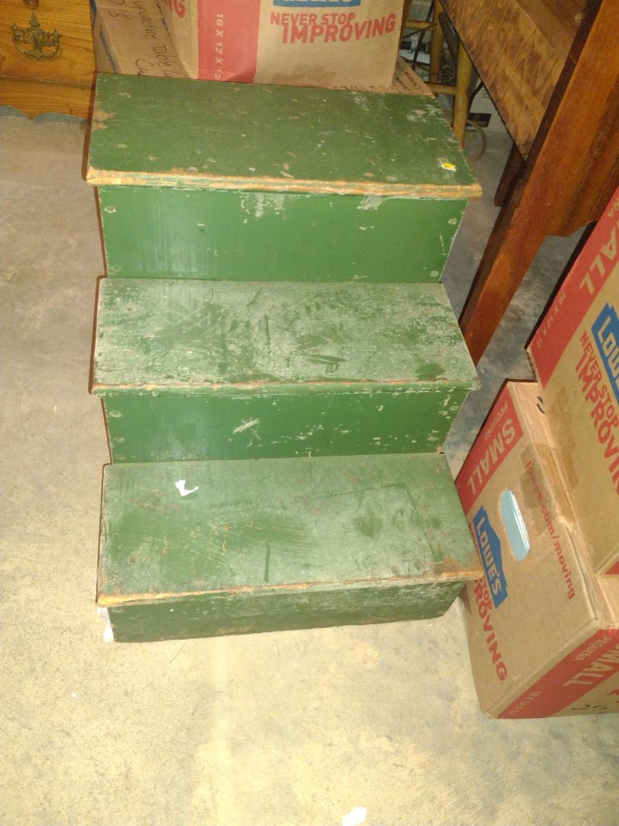 Set of Painted Wooden Steps. Item is located downstairs and must be brought up a flight of stairs for removal.