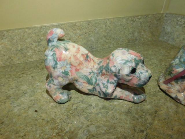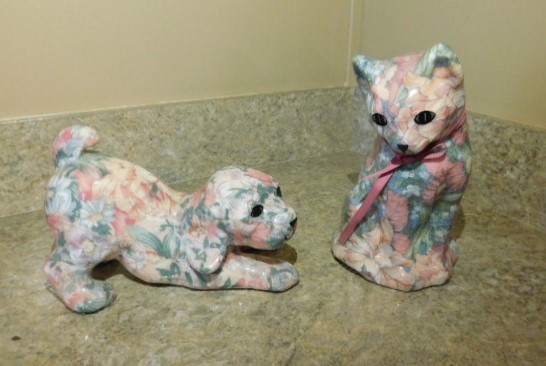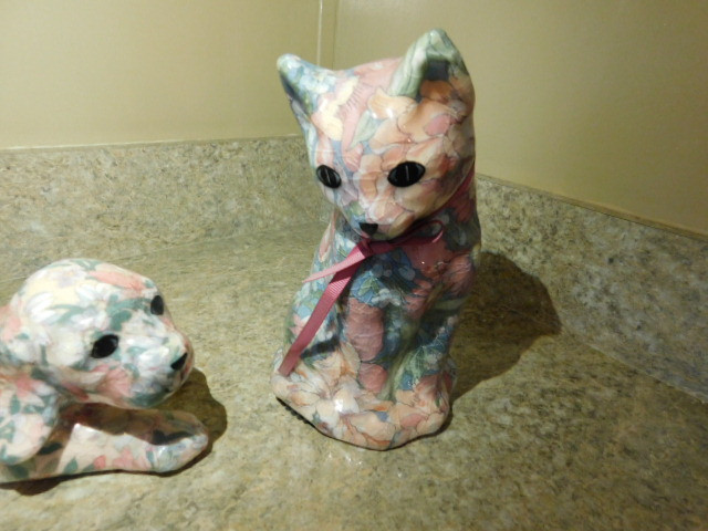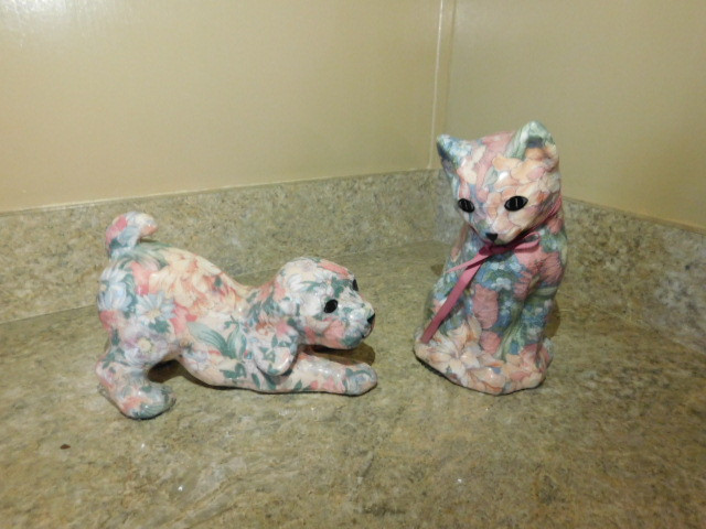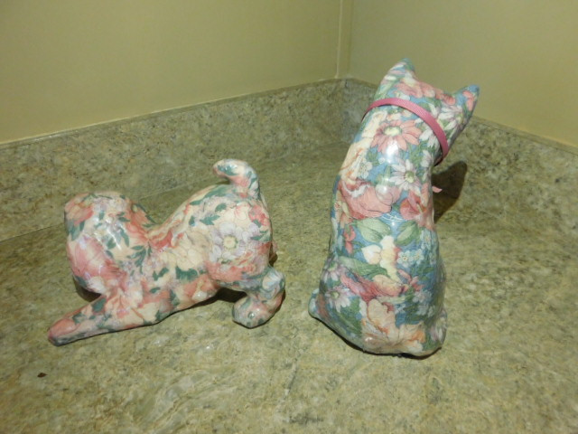 Set of Paper Mache Print Kitty and Puppy Figurines