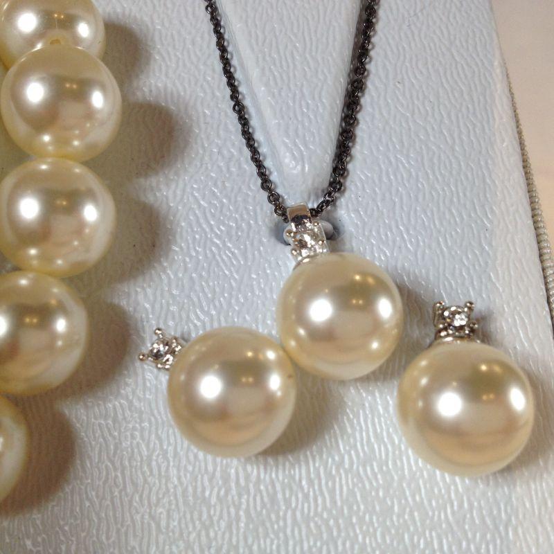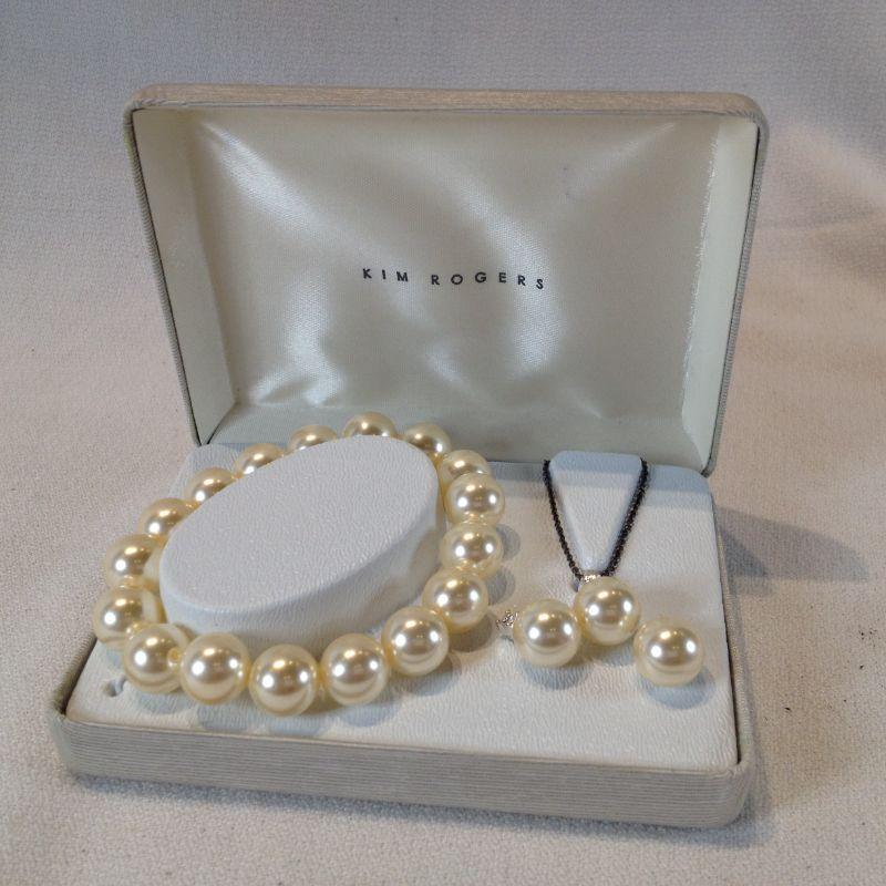 This lot is a fun set of pearls - necklace on a silver chain and pierced earrings with CZs along with a bracelet. They may be costume but they sure have a good look and would dress up any outfit.