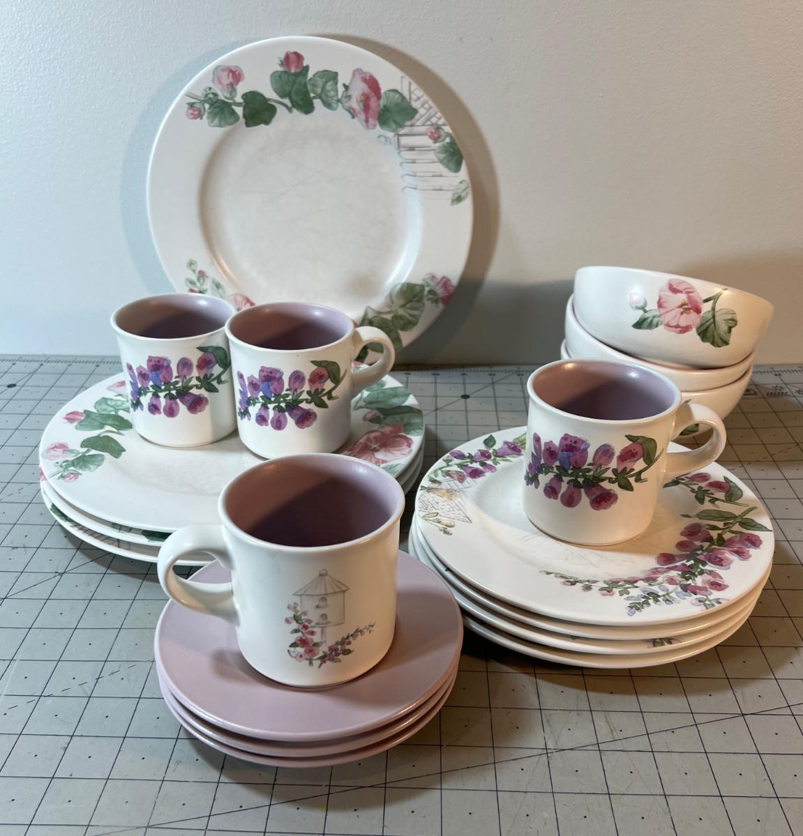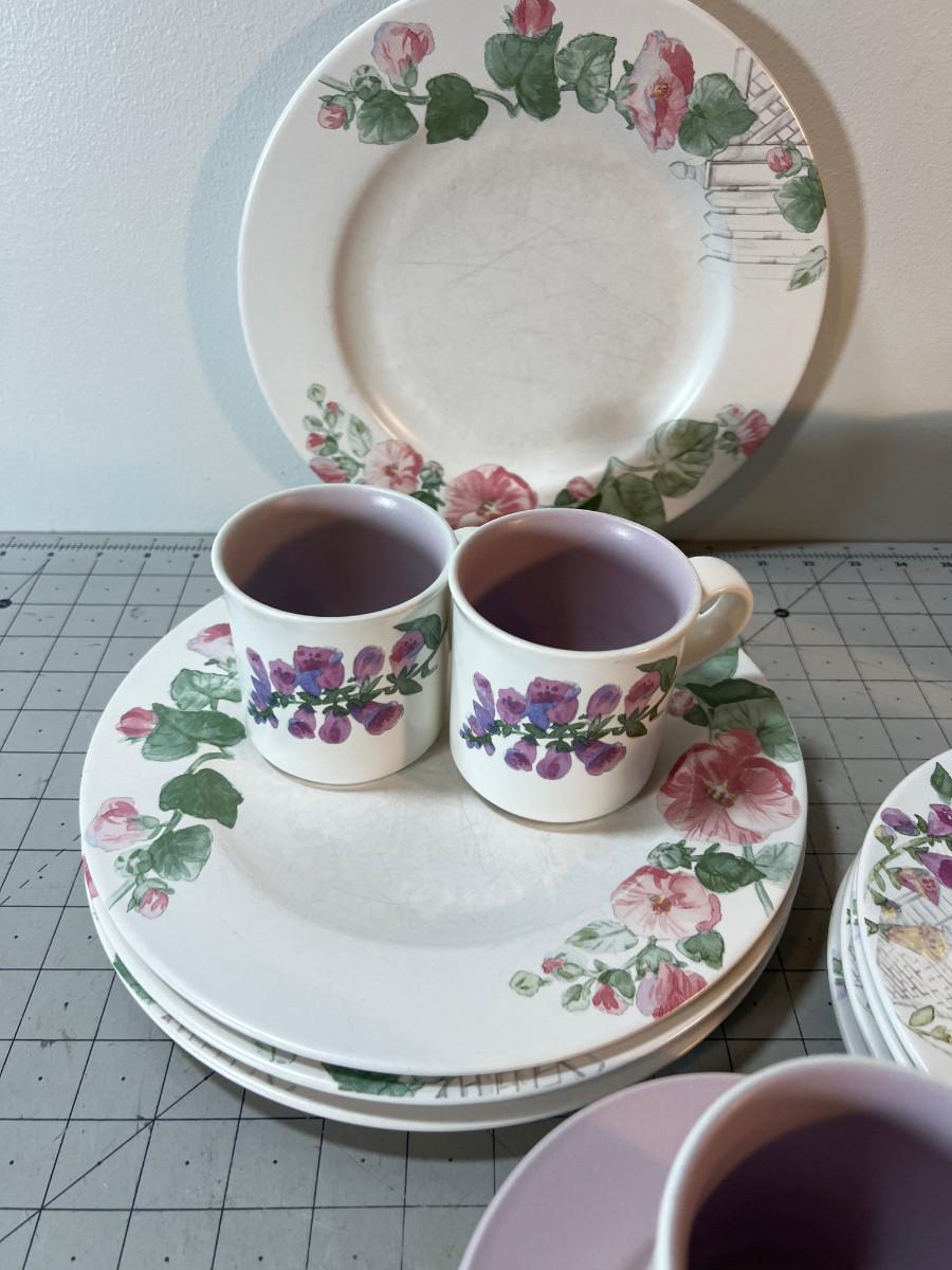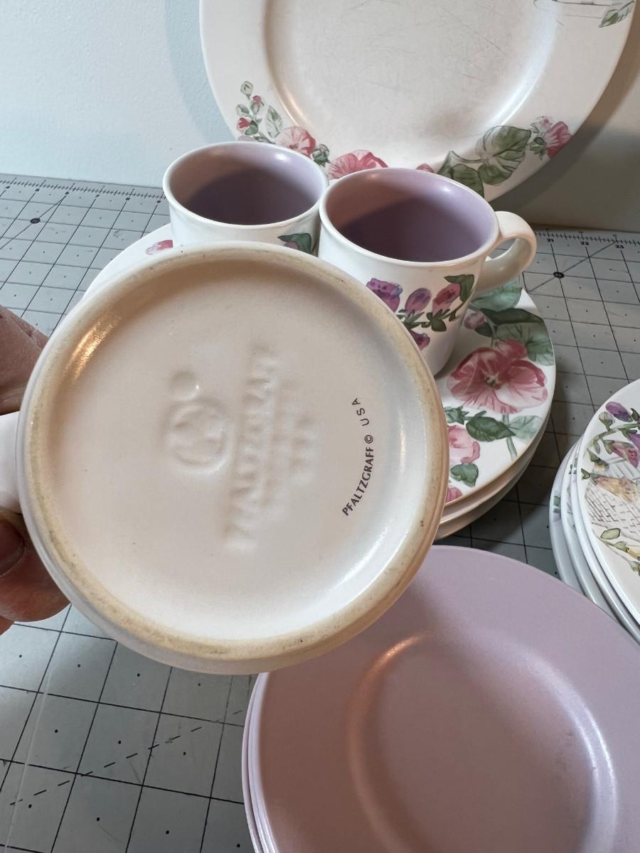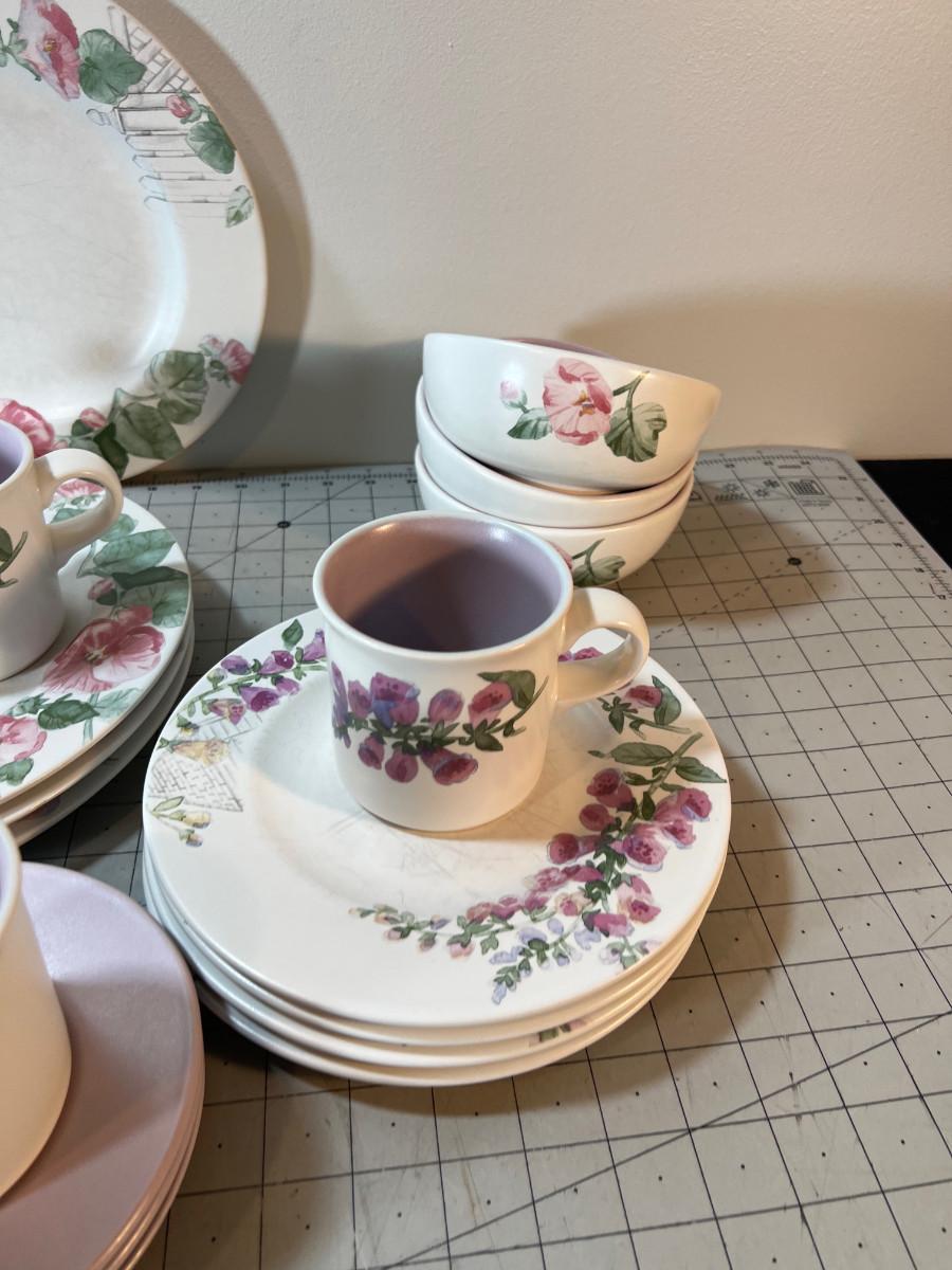 Set of Pink / Purple Partial Set of Pfaltzgraff Dishes