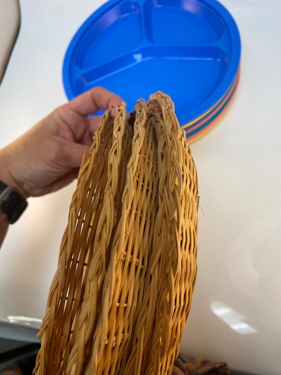 Set of Plastic Divided Picnic BBQ Childrens Kids Plates & Woven Wicker Rattan Paper Plate Holders
