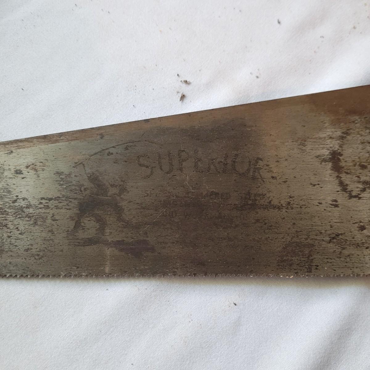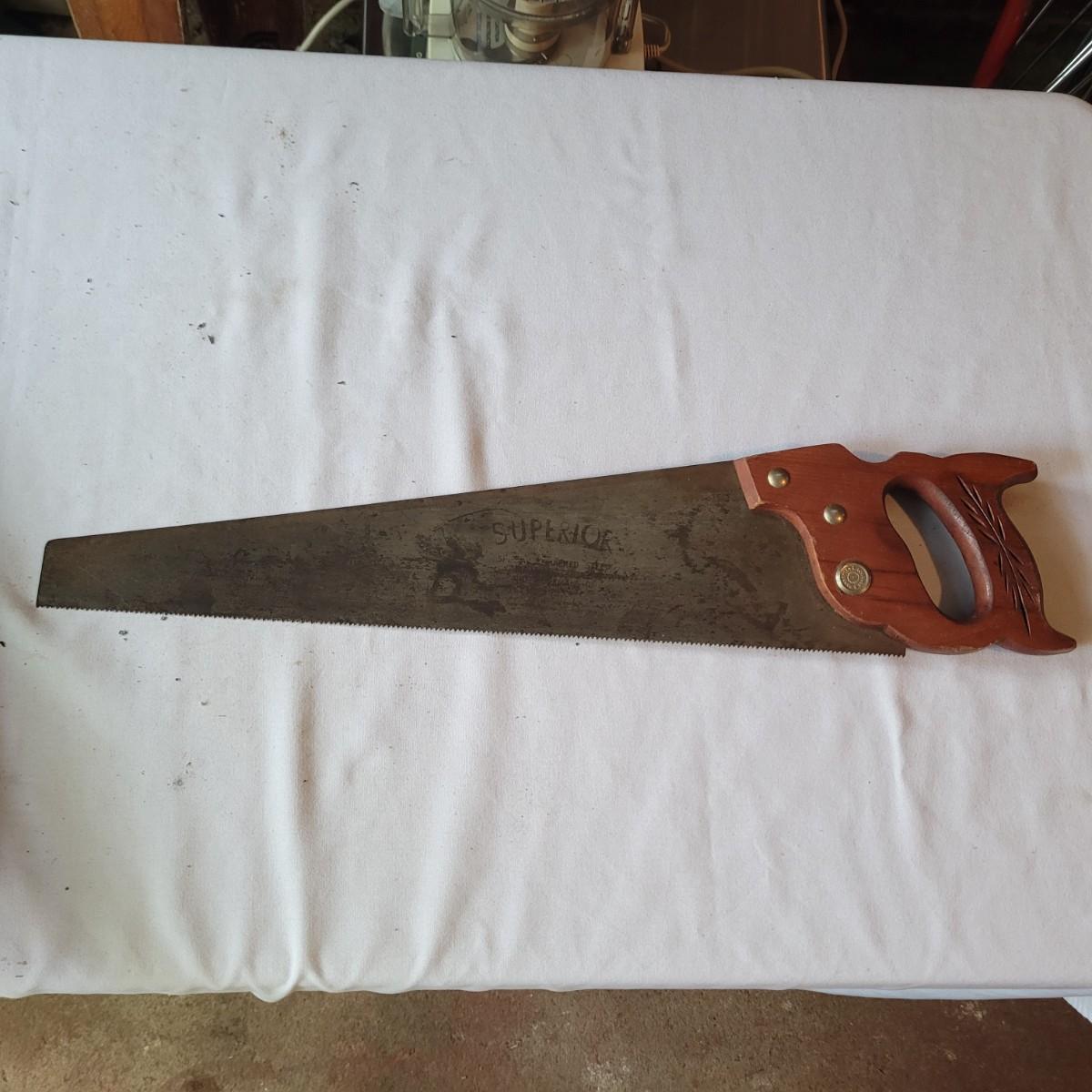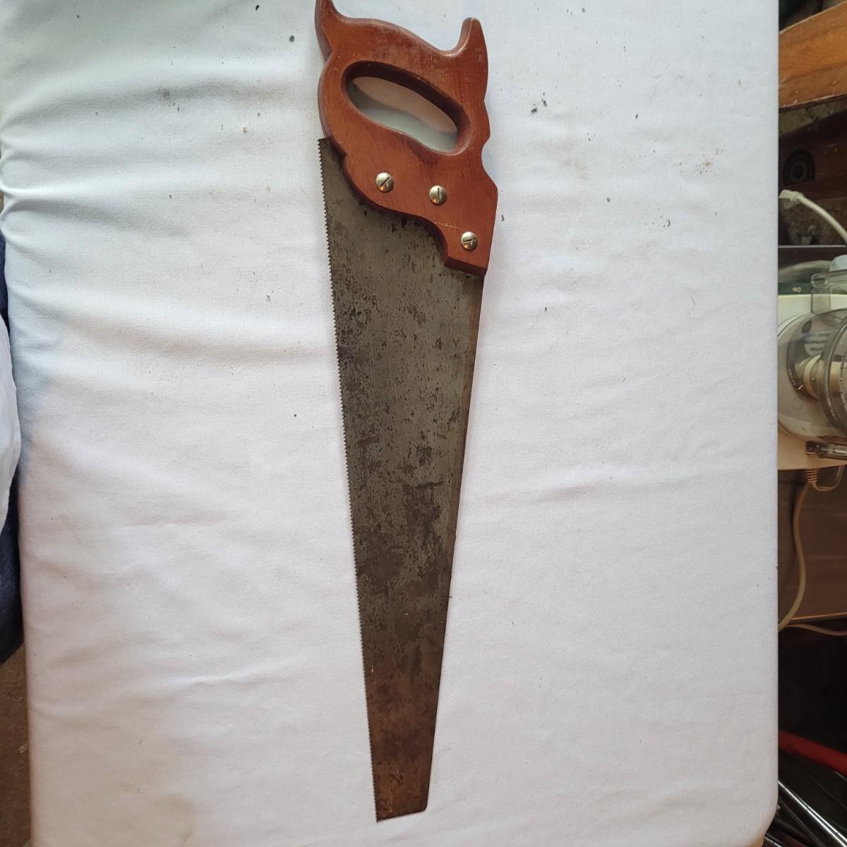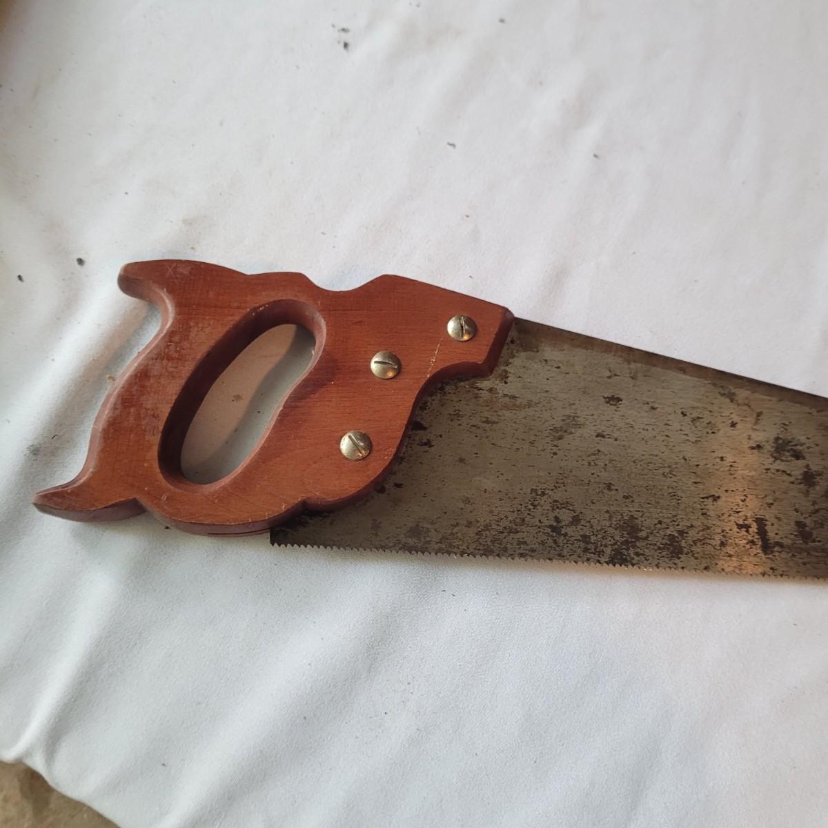 Set of pruning tools, including four hedge shears, two loppers and one saw. Shears are well used and rusted, can possibly be cleaned up and sharpened. Lopper with "Green Thumb" label has Dupont Teflon coating on blade. Saw well used but teeth are still sharp. Saw measures approximately 23.5"L, blade 20.5"L. Local pickup only.