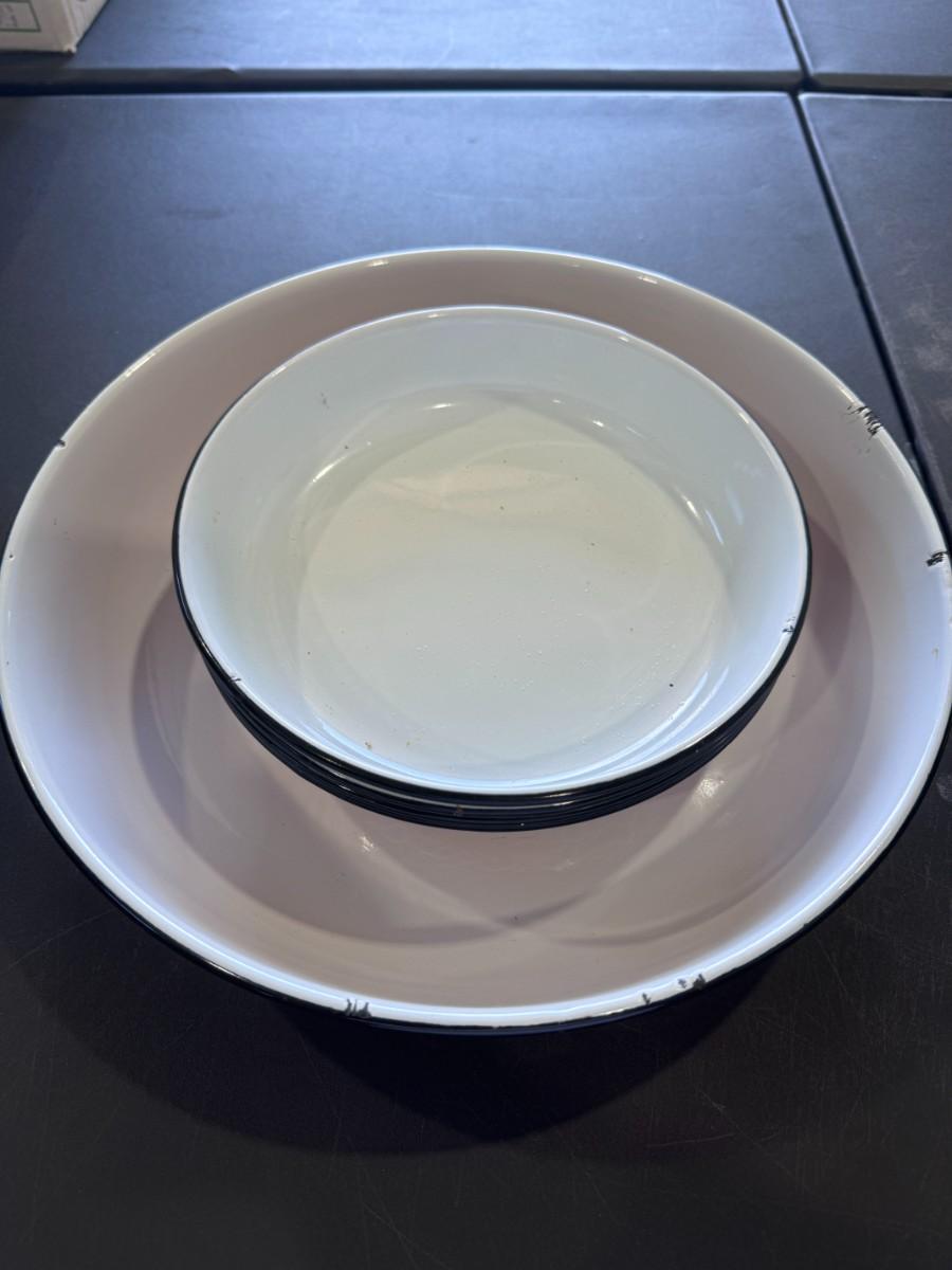 Versatility: Enamelware bowls are known for their versatility and can be used for mixing ingredients, serving food, or even for baking and cooking over campfires or stovetops (though not microwave safe).