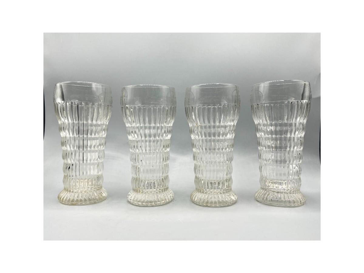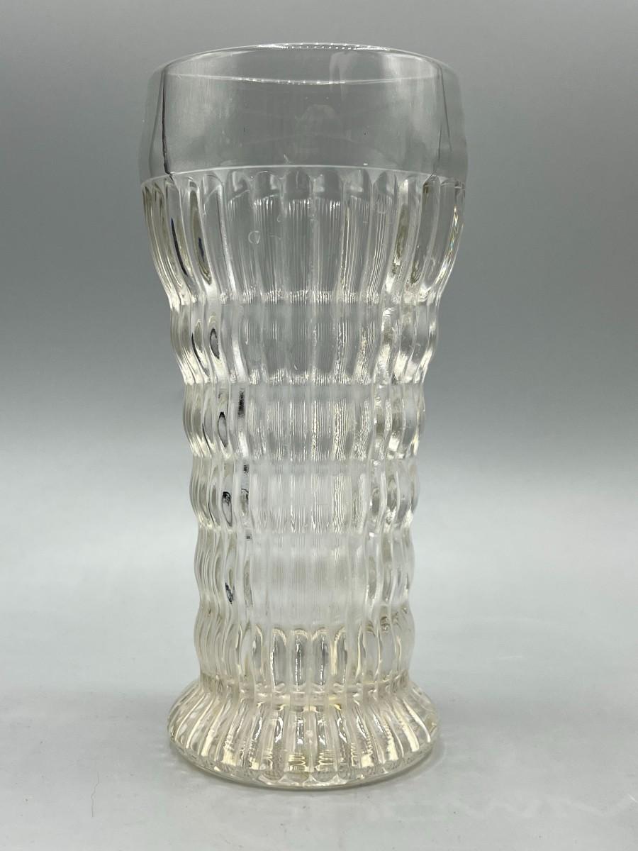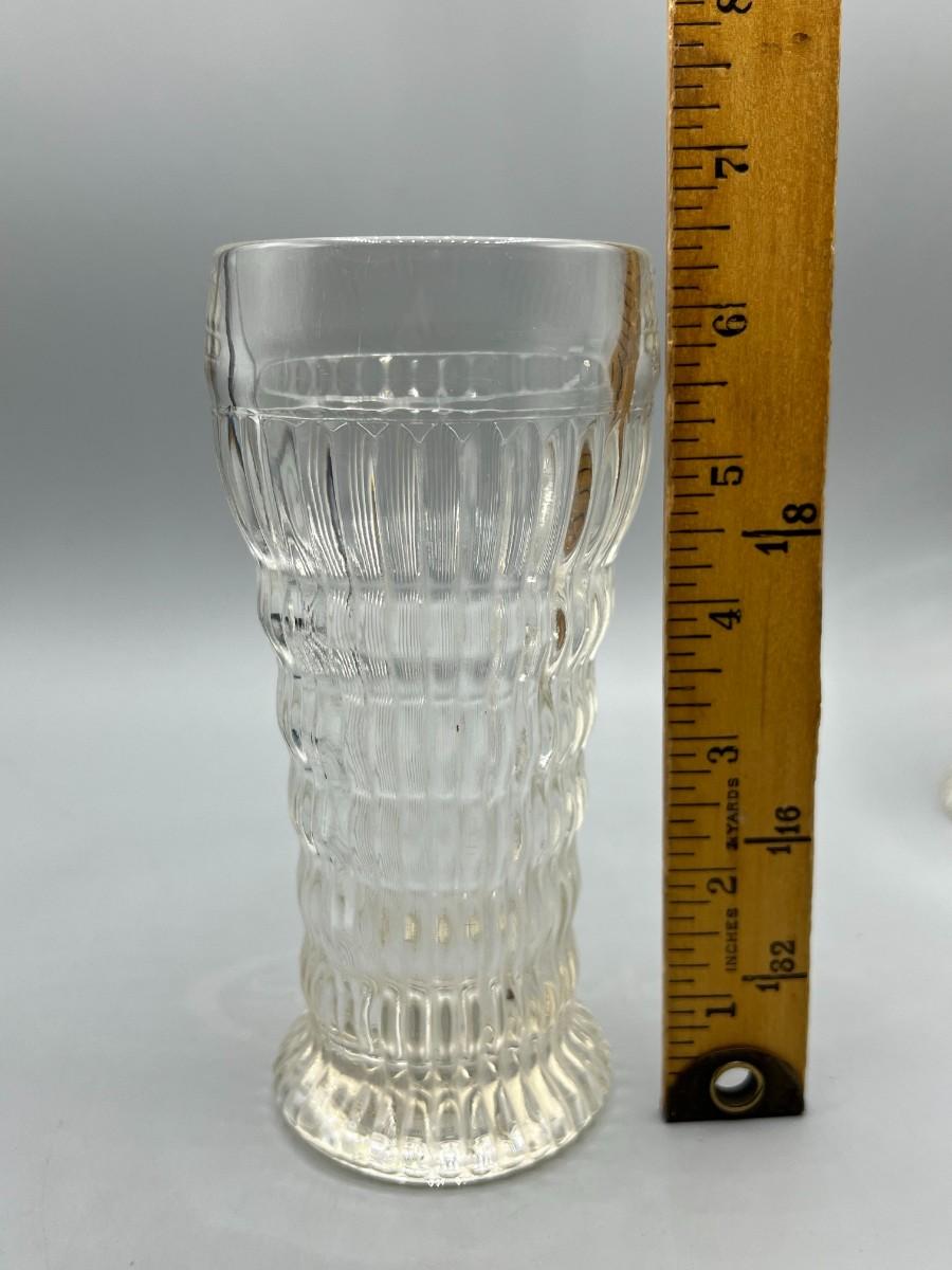 Set of Ribbed Glass Textured Drinking Glasses, there is no significant cracks or chips to the glasses and is in good useable condition. Check pictures for more details and for sizing.