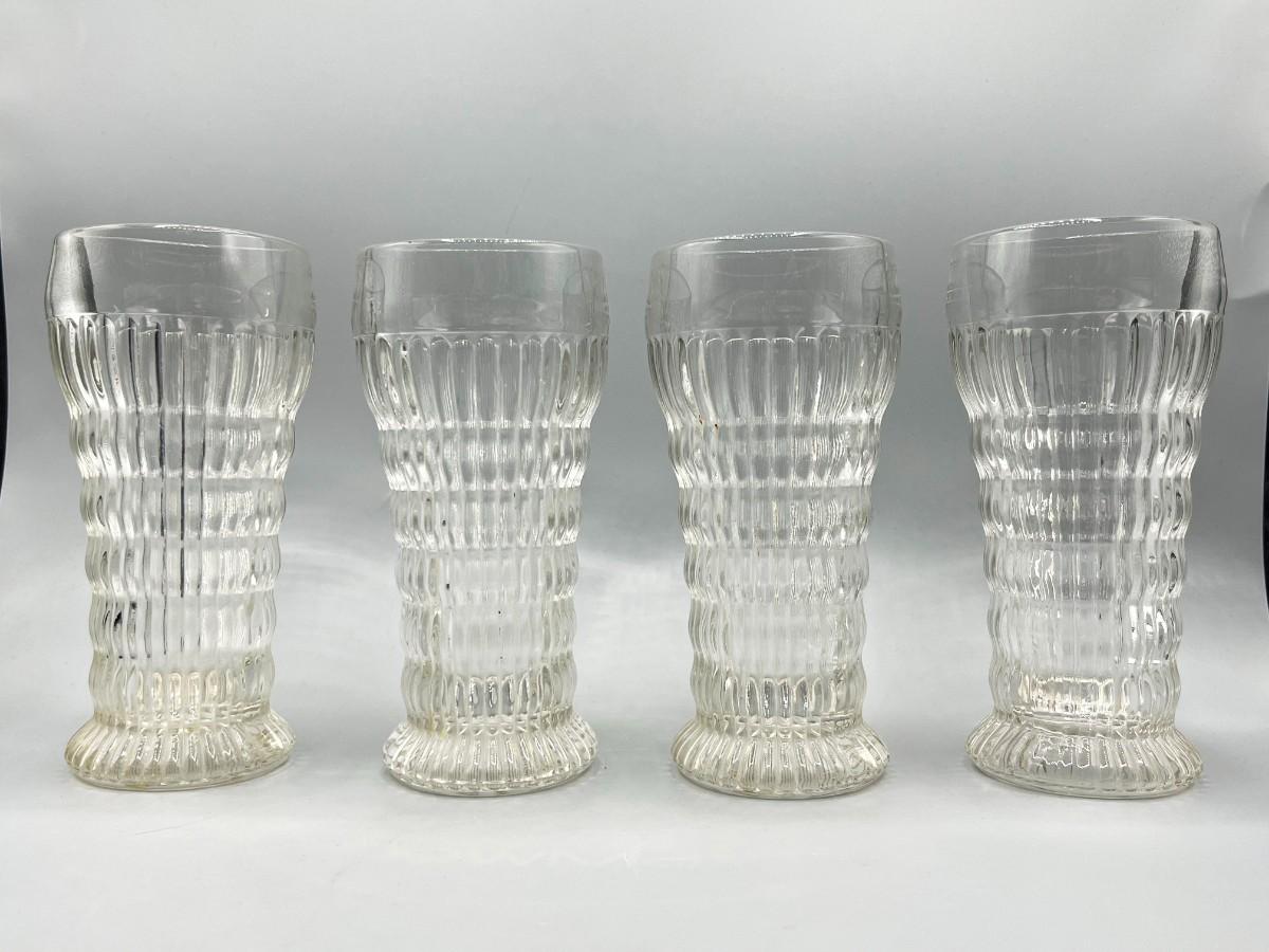 Set of Vintage Ribbed Glass Textured Drinking Glasses