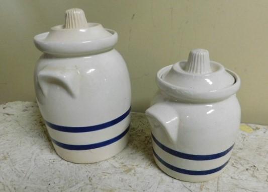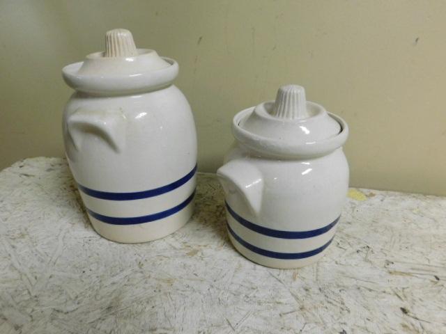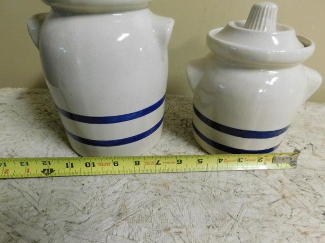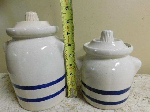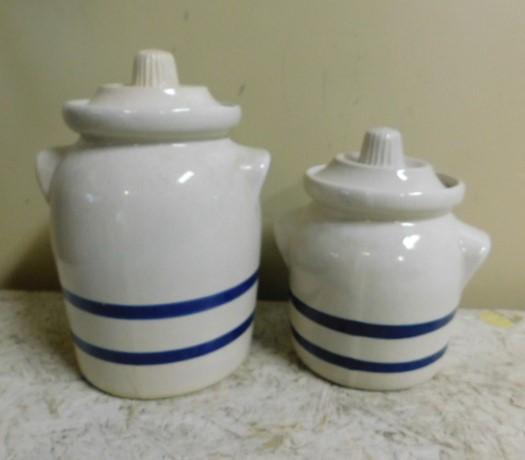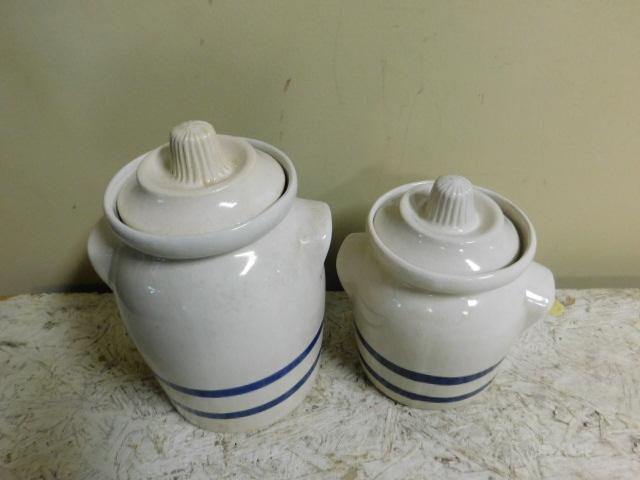 Set of Roseville, OH  Ceramic Crocks with Lids Unique Design 9" and 7"