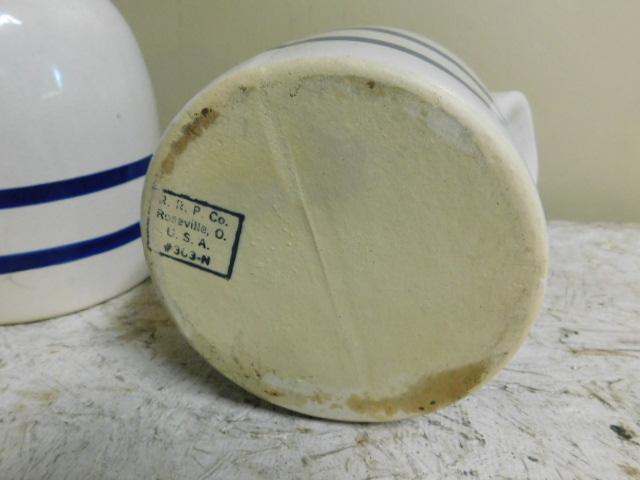 Set of Roseville, OH Ceramic Crocks with Lids Unique Design 9" and 7"