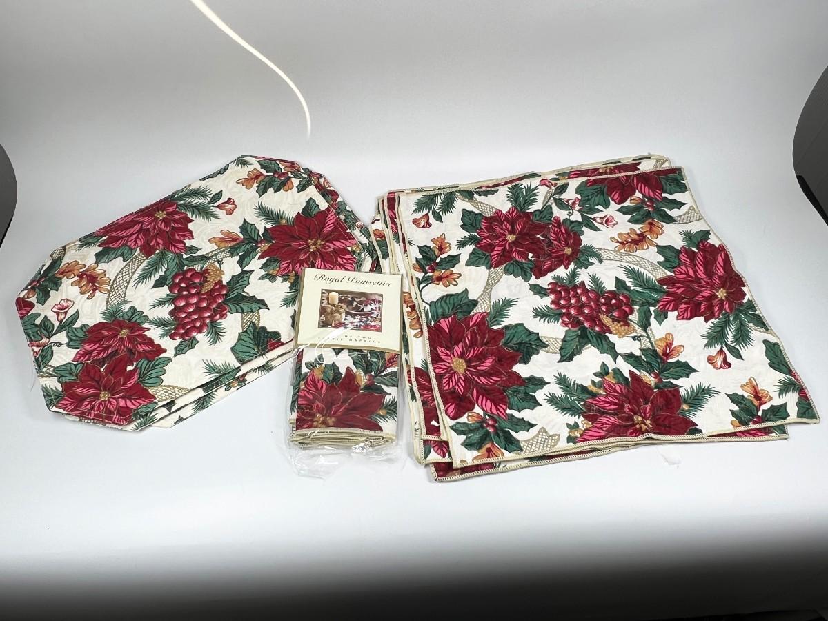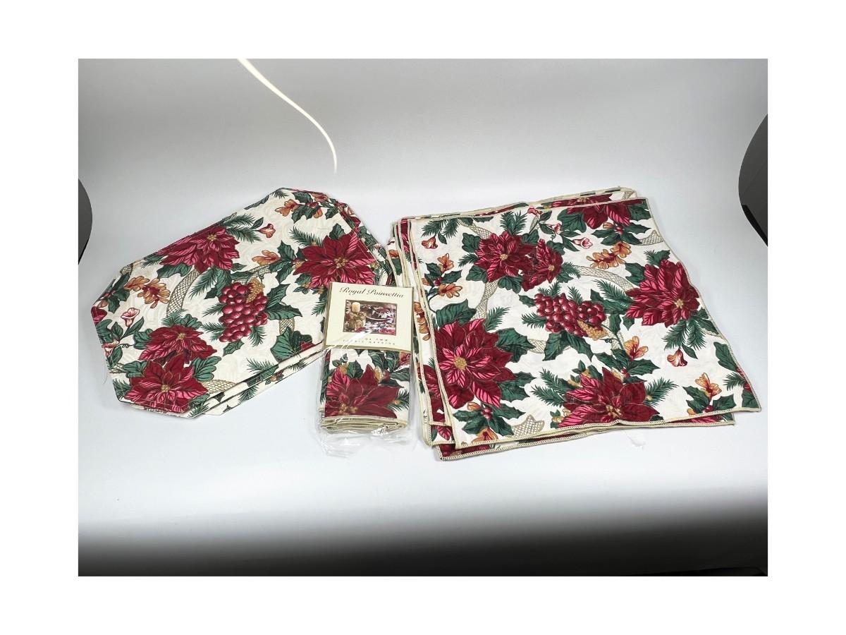 Set of Royal Poinsettia Fabric Napkins & Place Mats