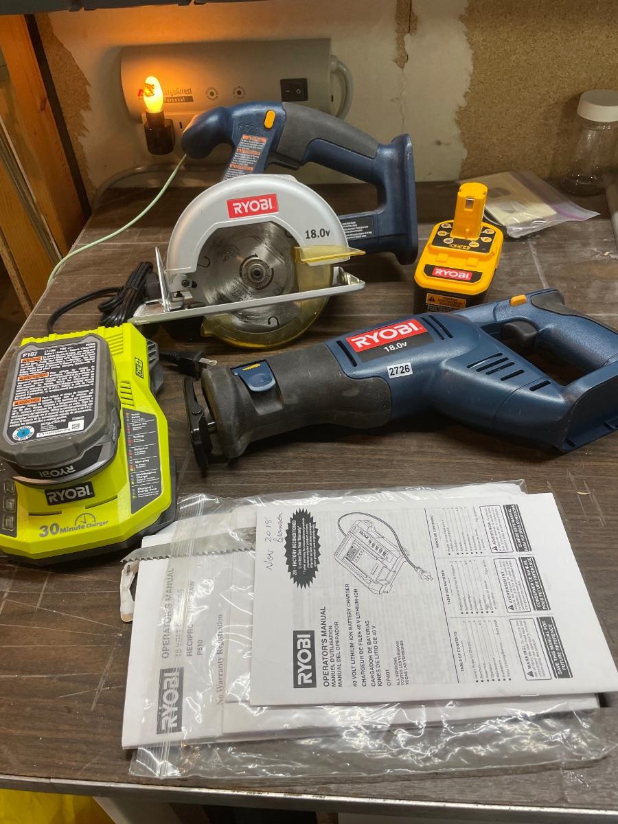 Set of Ryobi saws and batteries