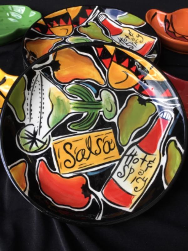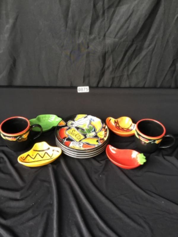 Set of salsa dishes (Four plates, two mugs, 4 dip dishes lot 875