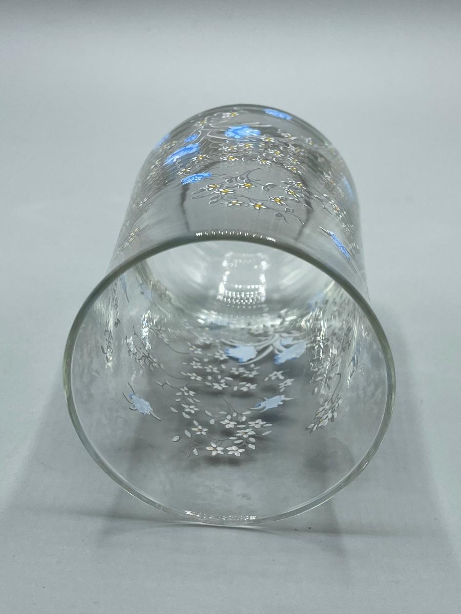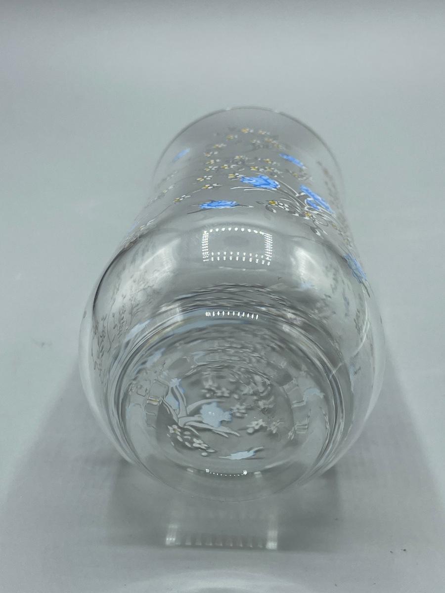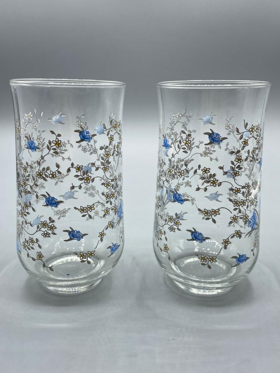 Vintage Retro Set of Seven Blue Floral Painted Drink Glasses