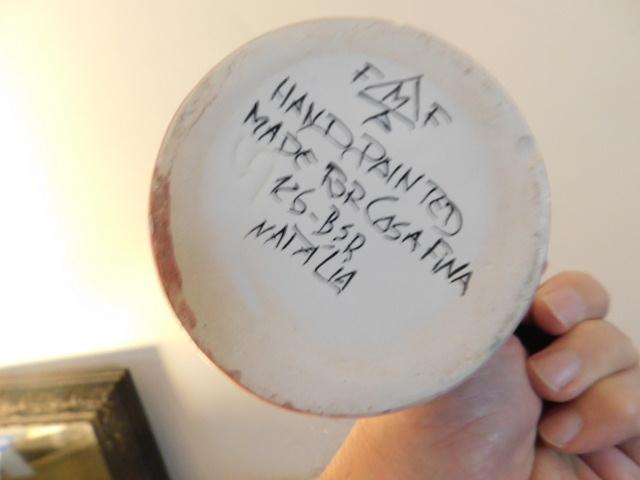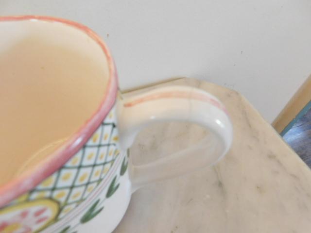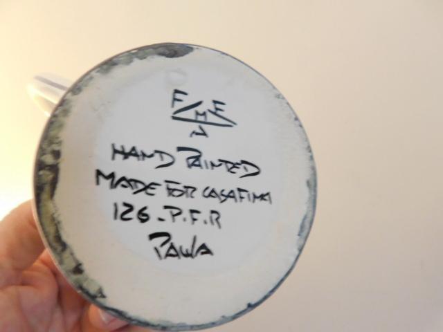 Set of Seven Hand Painted Portugal Ceramic Mugs one mug handle has a crack as shown
