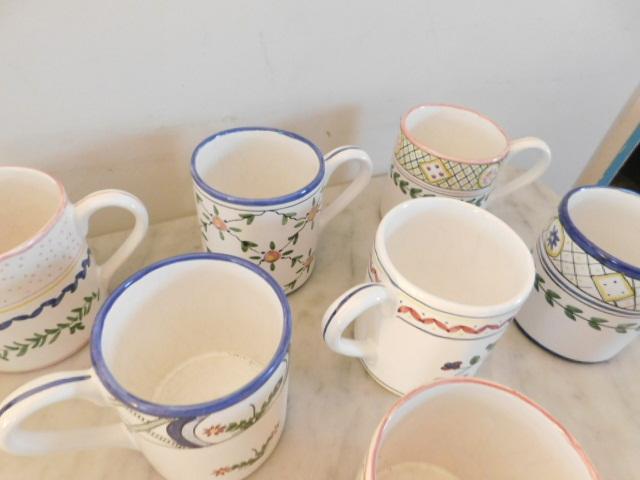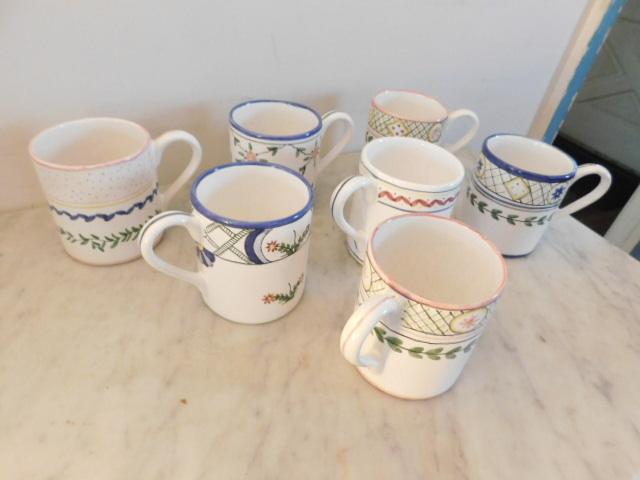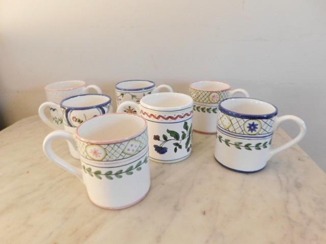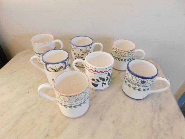 Set of Seven Hand Painted Portugal Ceramic Mugs