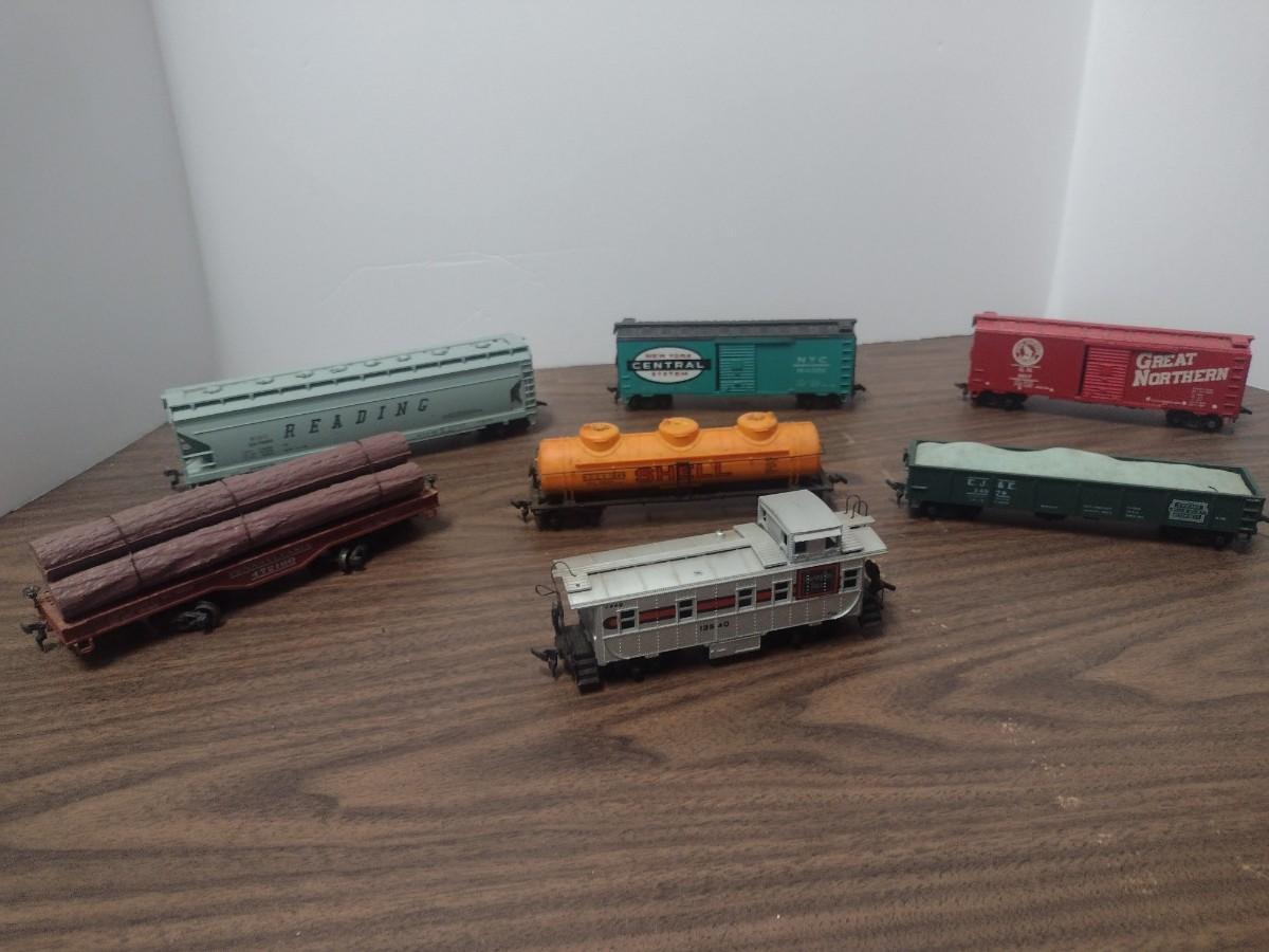 Set of Seven Tyco HO Scale Rail Cars and Caboose No Boxes