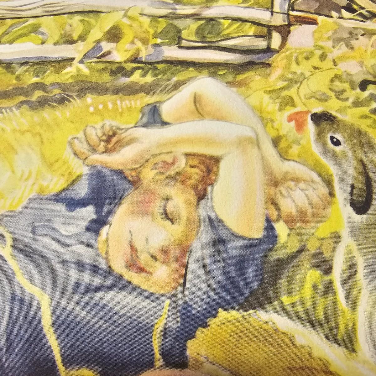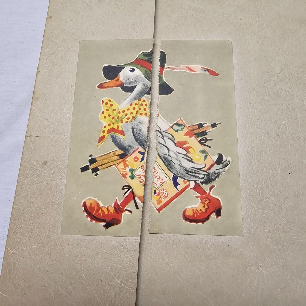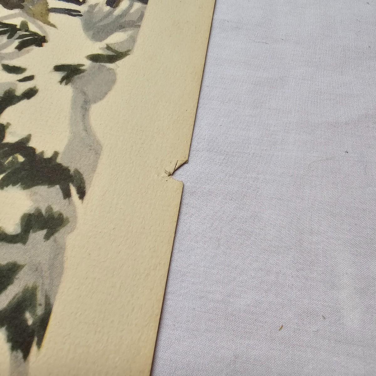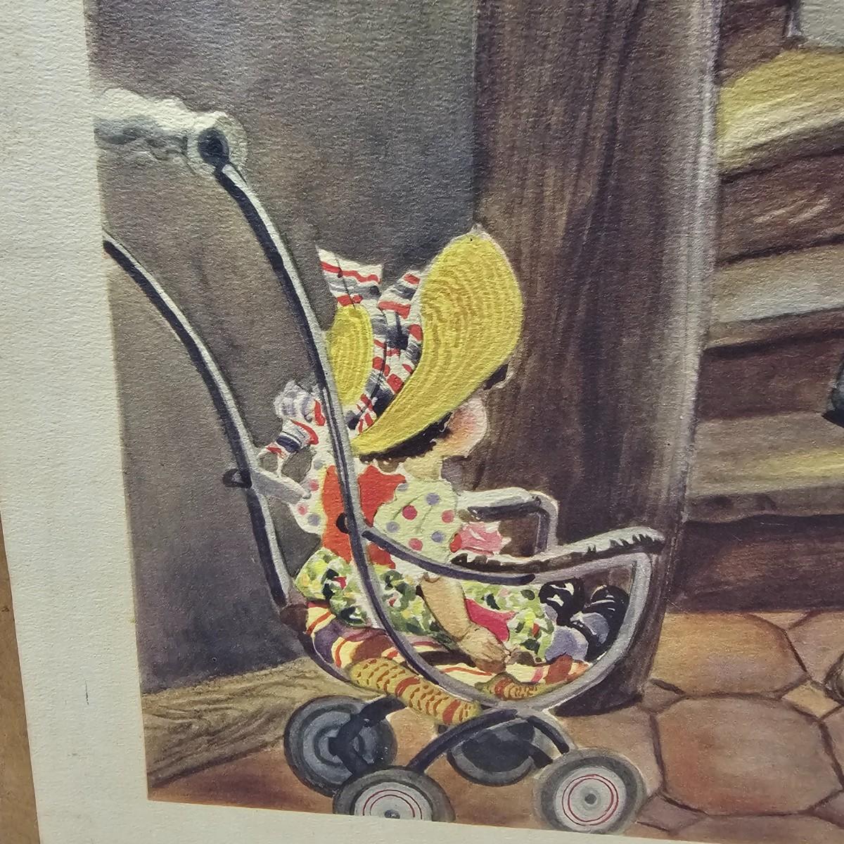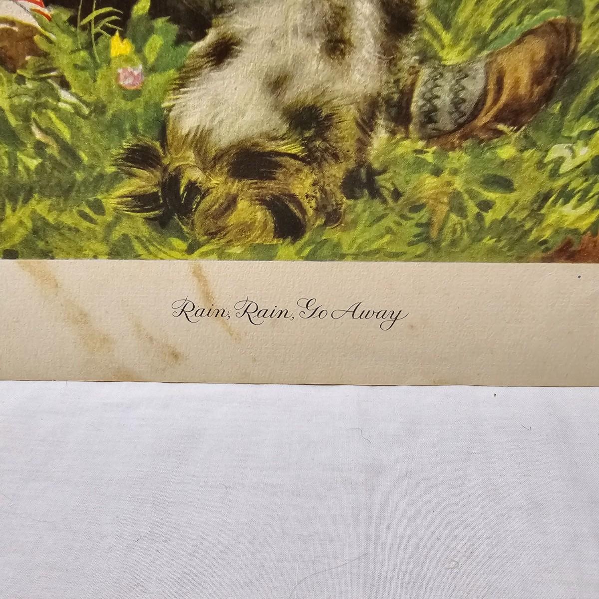 Beautiful color panels on heavy stock, a set with binder by Feodor Rojankovsky. Produced in 1945 by Simon & Schuster and are part of the Golden Library of children's publications. Six of the prints are loose, on is stuck on cardboard and slightly torn at the top. All prints measure 14.25" x 18.75". Portfolio binder is 15"W x 19"H. Set is missing one print of The Old Woman in the Shoe. Some discoloring and tears on the prints. See photos for details. Shipping available.