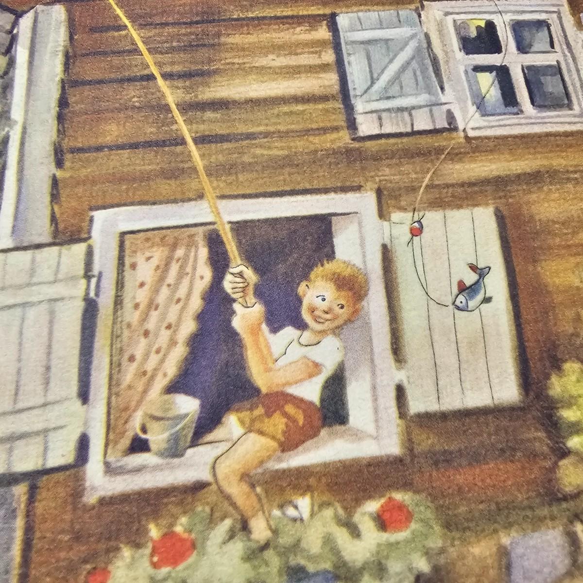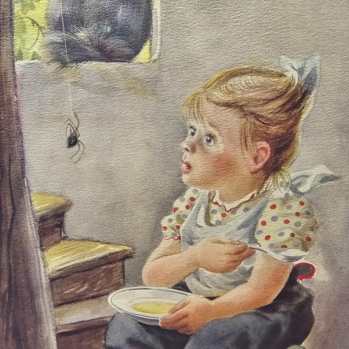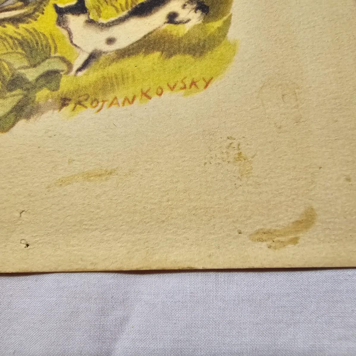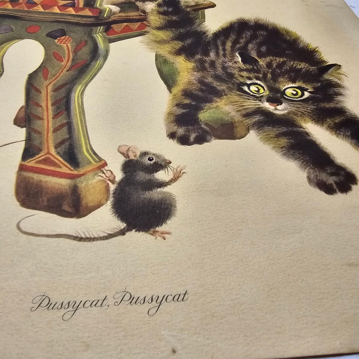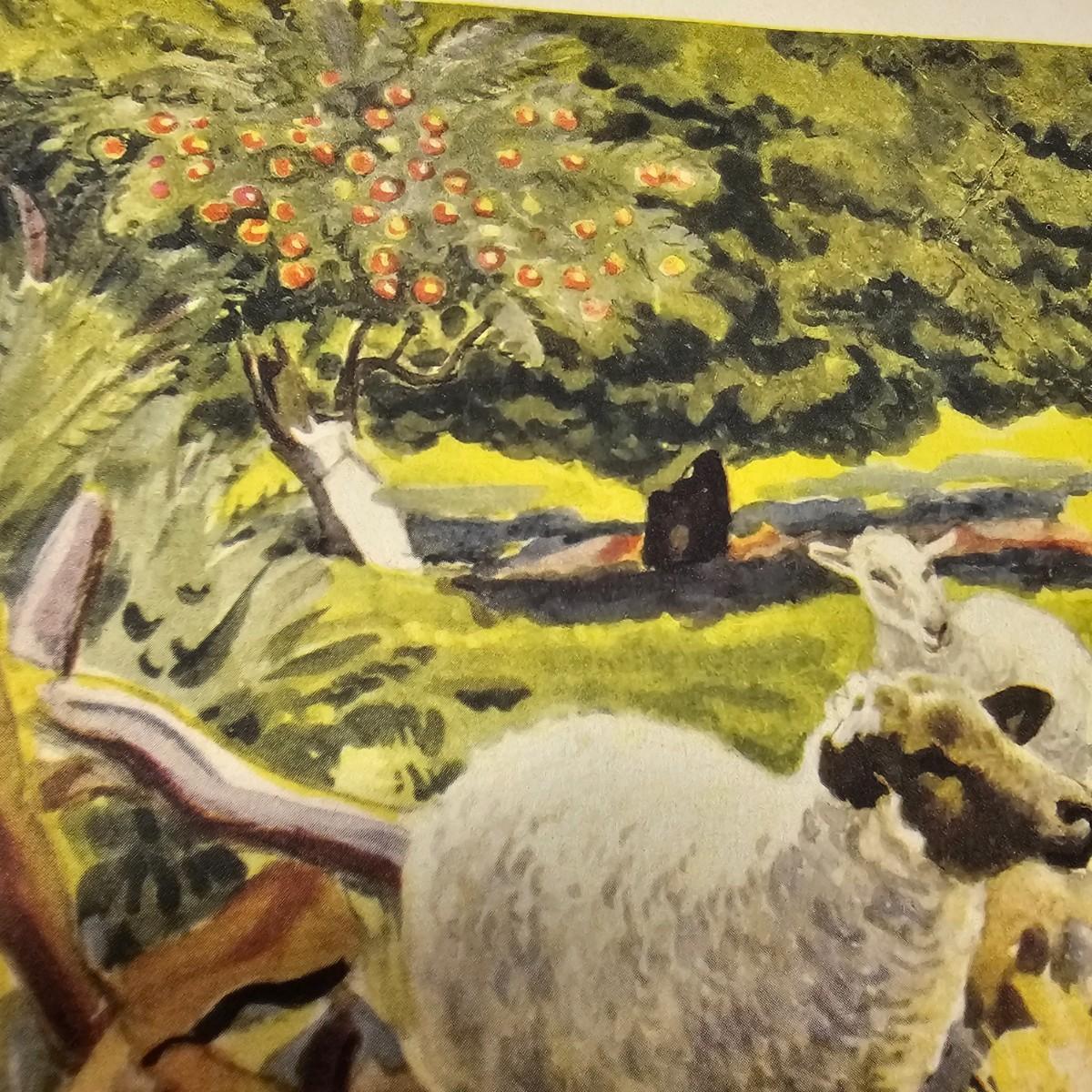Beautiful color panels on heavy stock, a set with binder by Feodor Rojankovsky. Produced in 1945 by Simon & Schuster and are part of the Golden Library of children's publications. Six of the prints are loose, on is stuck on cardboard and slightly torn at the top. All prints measure 14.25" x 18.75". Portfolio binder is 15"W x 19"H. Set is missing one print of The Old Woman in the Shoe. Some discoloring and tears on the prints. See photos for details. Shipping available.