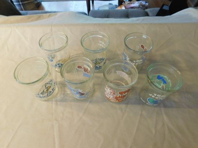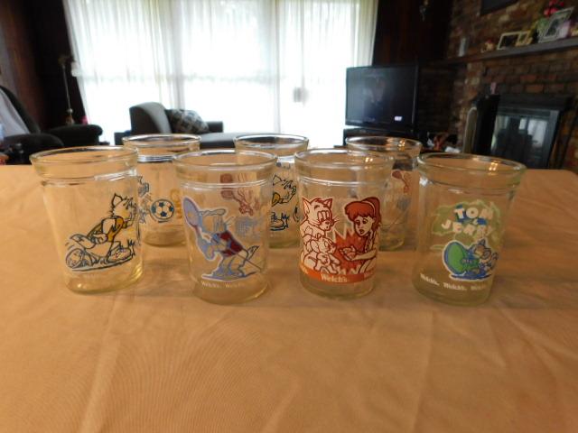 Set of Seven Vintage Welch's Grape Jar Cartoon Face