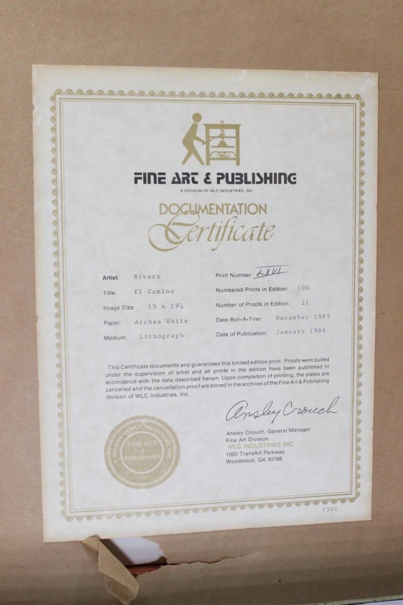 25" x 30" set of framed signed and numbered lithographs by the artist Antonio Rivera. There is no damage to the frames or the protective glass. The certificate of authenticity is attached to the back of the frame with more information about each lithograph.