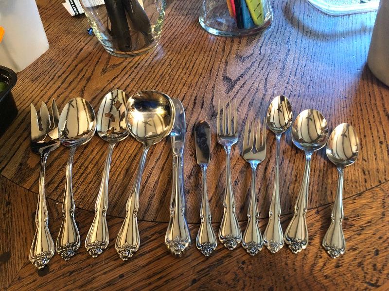 80 piece Stainless Steel silverware setincluding serving pieces by Rogers
