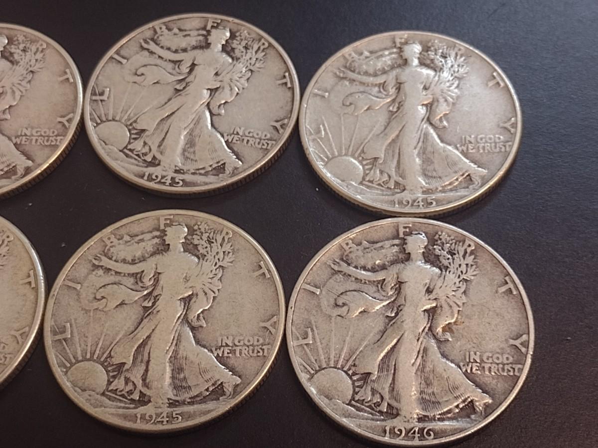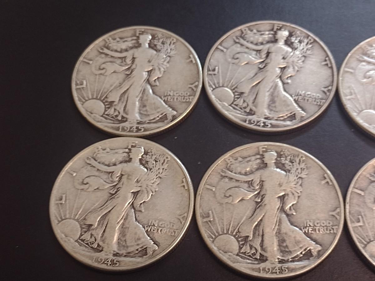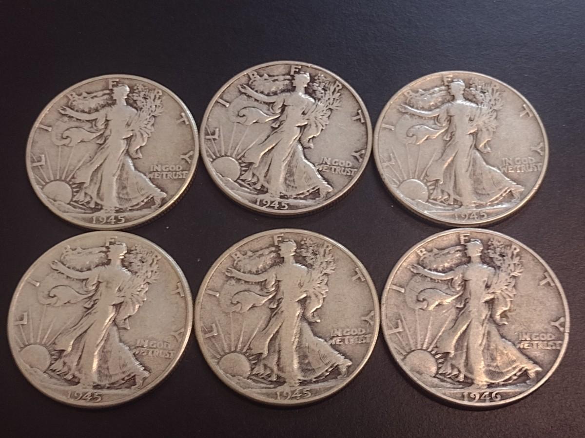 Set of Six 1945 U.S. Mint Walking Liberty Silver Half Dollars Circulated (14)