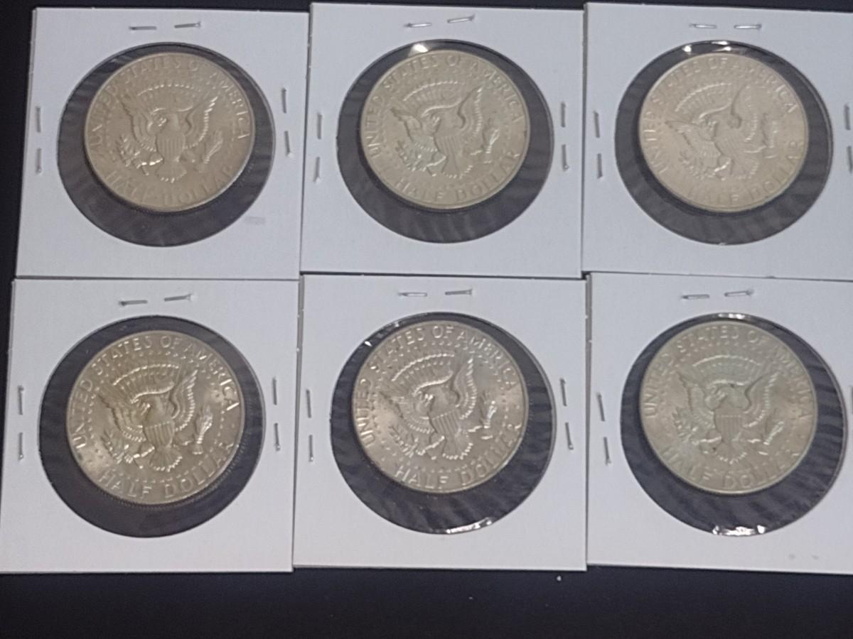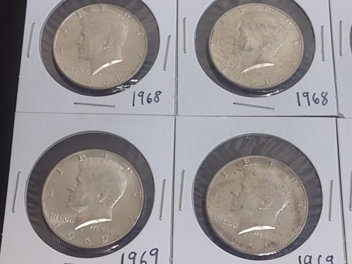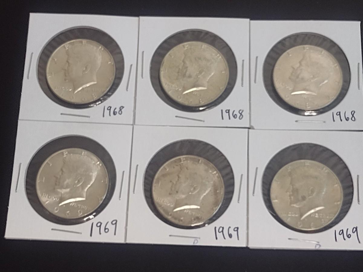 Set of Six 1968-1969 Kennedy 40% Silver Half-Dollars Circulated (19)