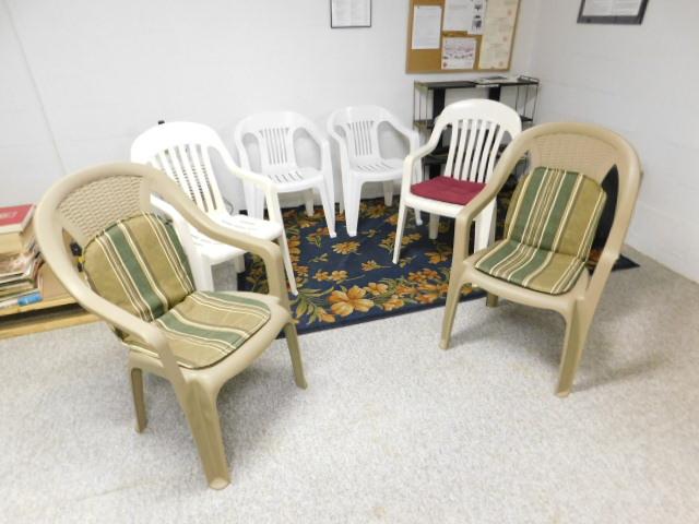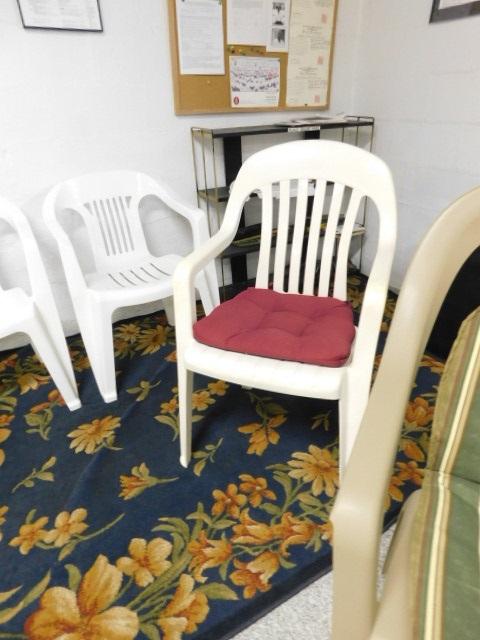 Set of Six Assorted Composite Molded Patio Chairs Various Sizes and Shapes