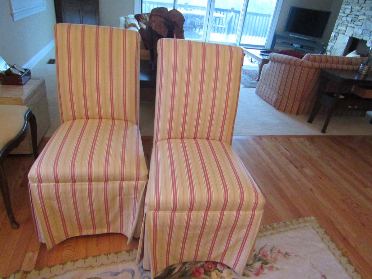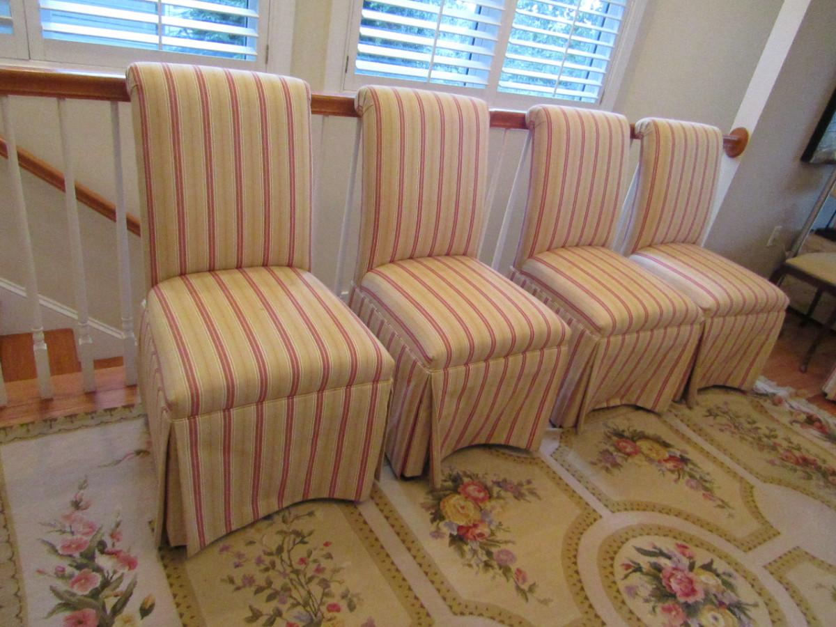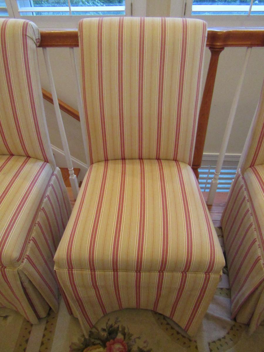 Set of Six Designmaster Upholstered Dining Chairs. Please see all pictures- some staining.