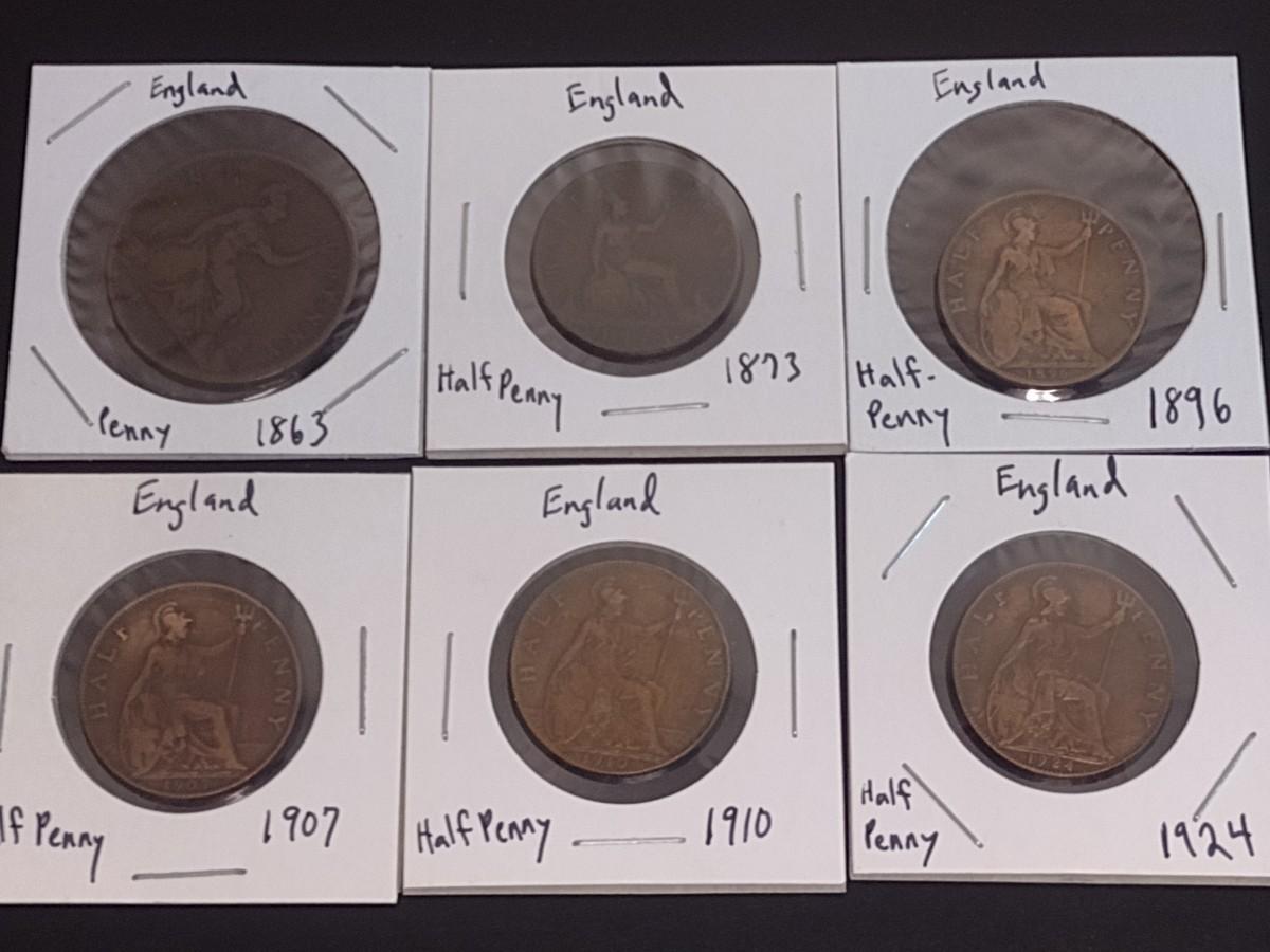 Set of Six Early Date British Half Pennies Circulated Condition (34)
