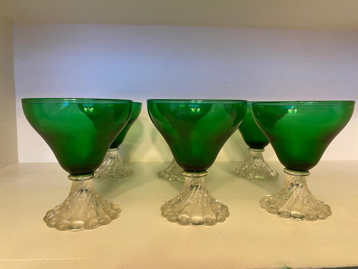 Set of six Forest Green vintage Burple sherbet/Champagne coupe glasses