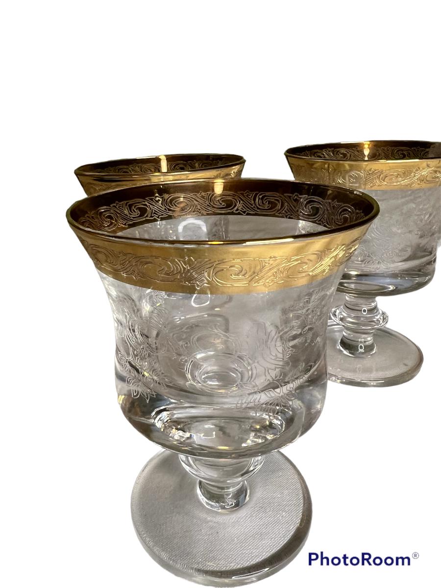 Set of Six Gold Rim LIQUEUR Coupes Measures 4 1/2 tall