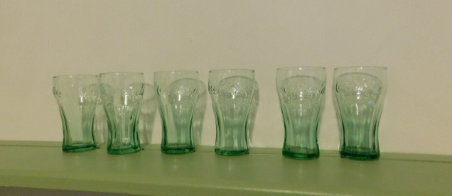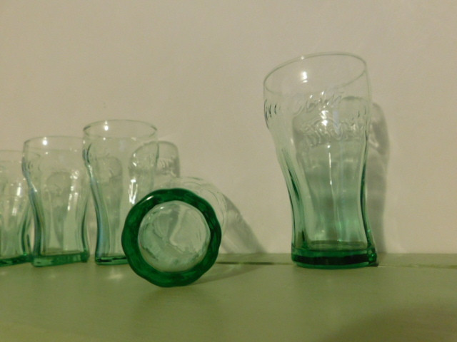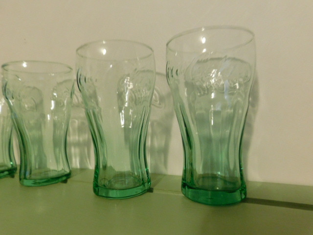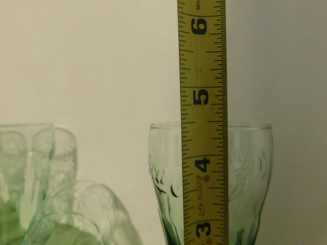 Set of Six Green 8oz Soda Fountain Coca Cola Glasses