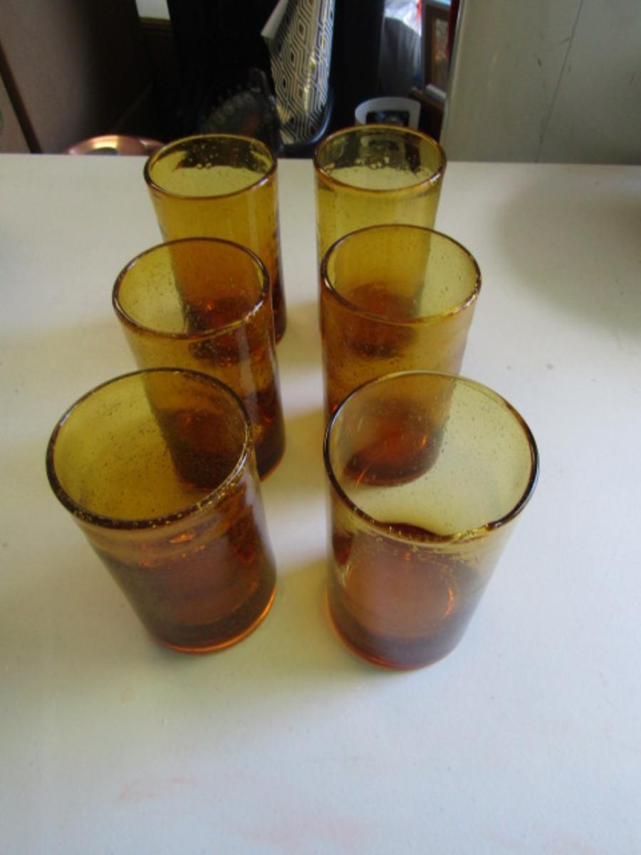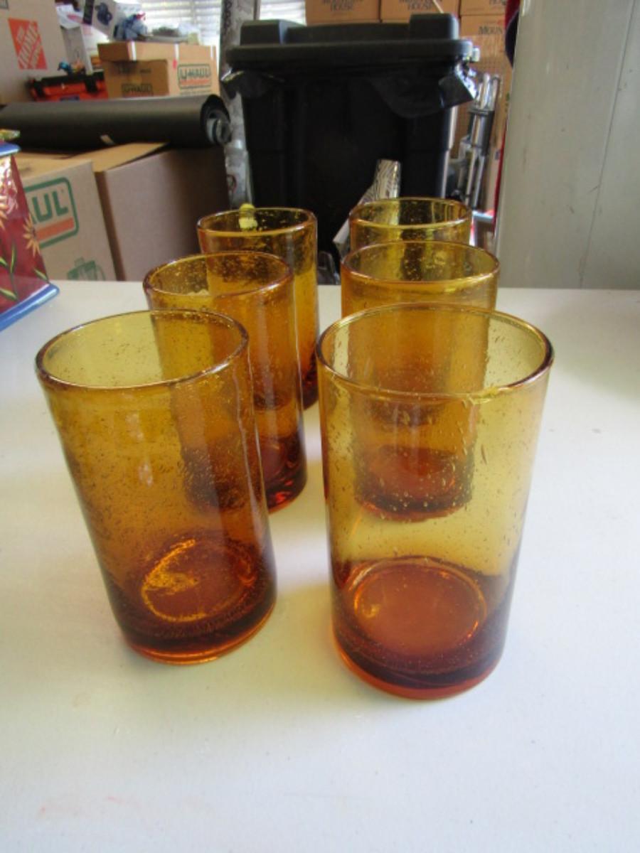 Set of Six Hand Blown Drinking Glasses with Air Inclusions