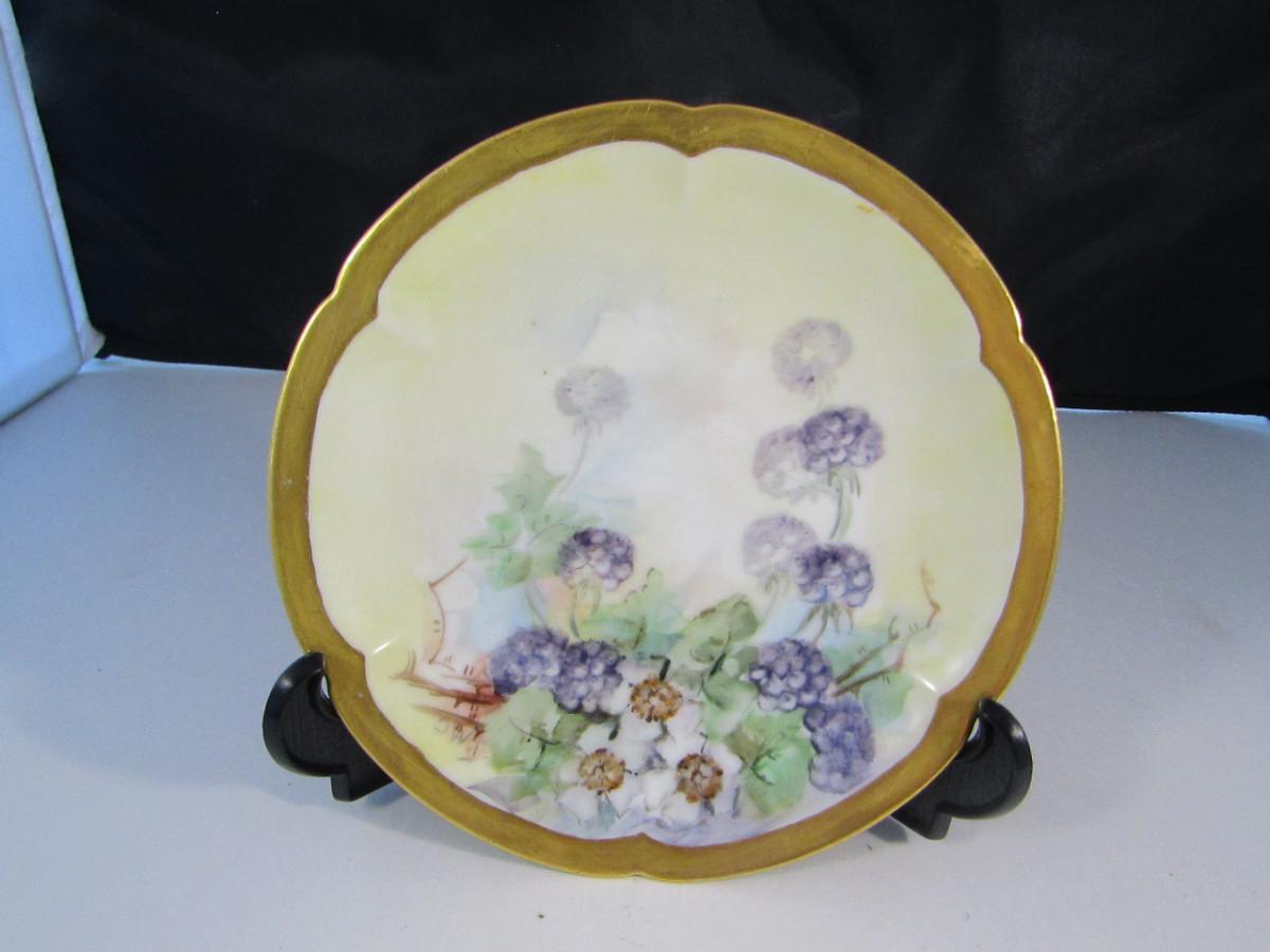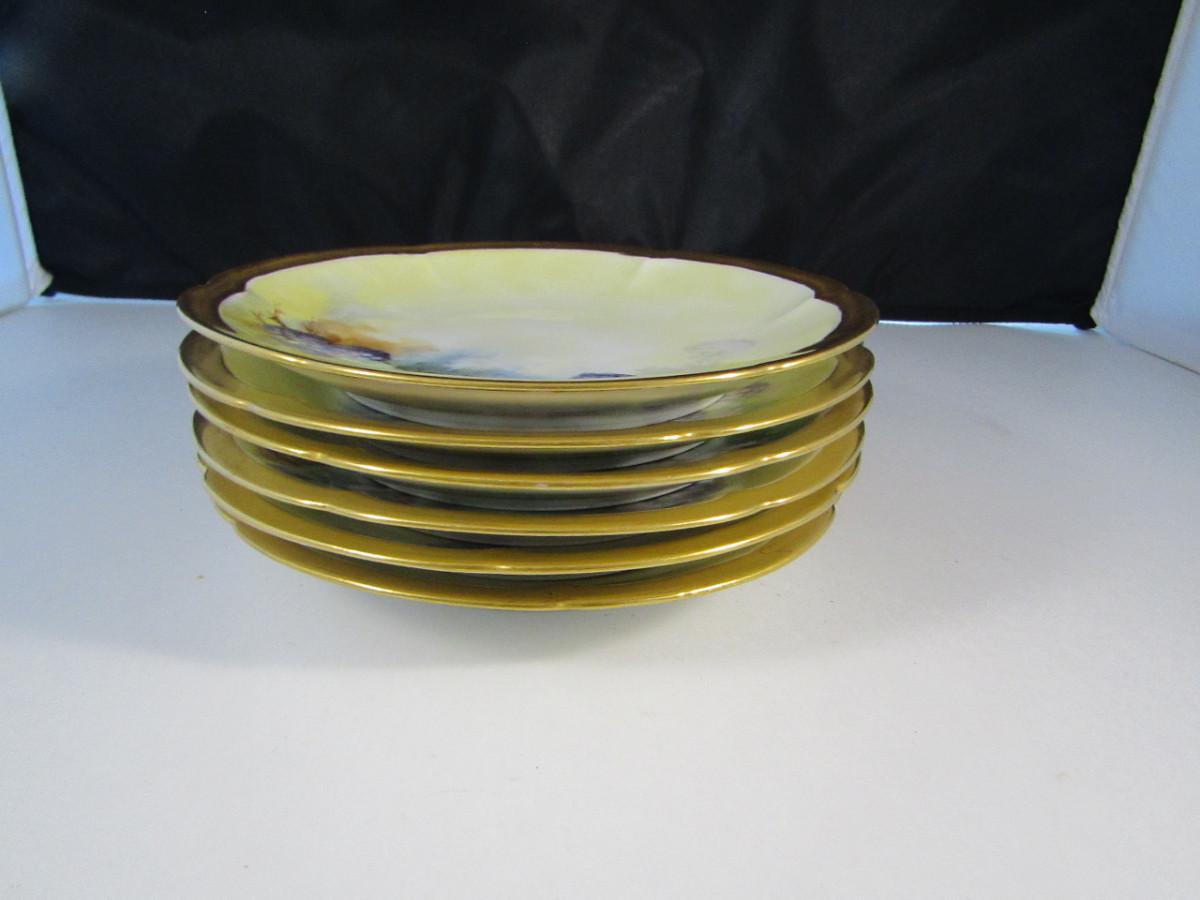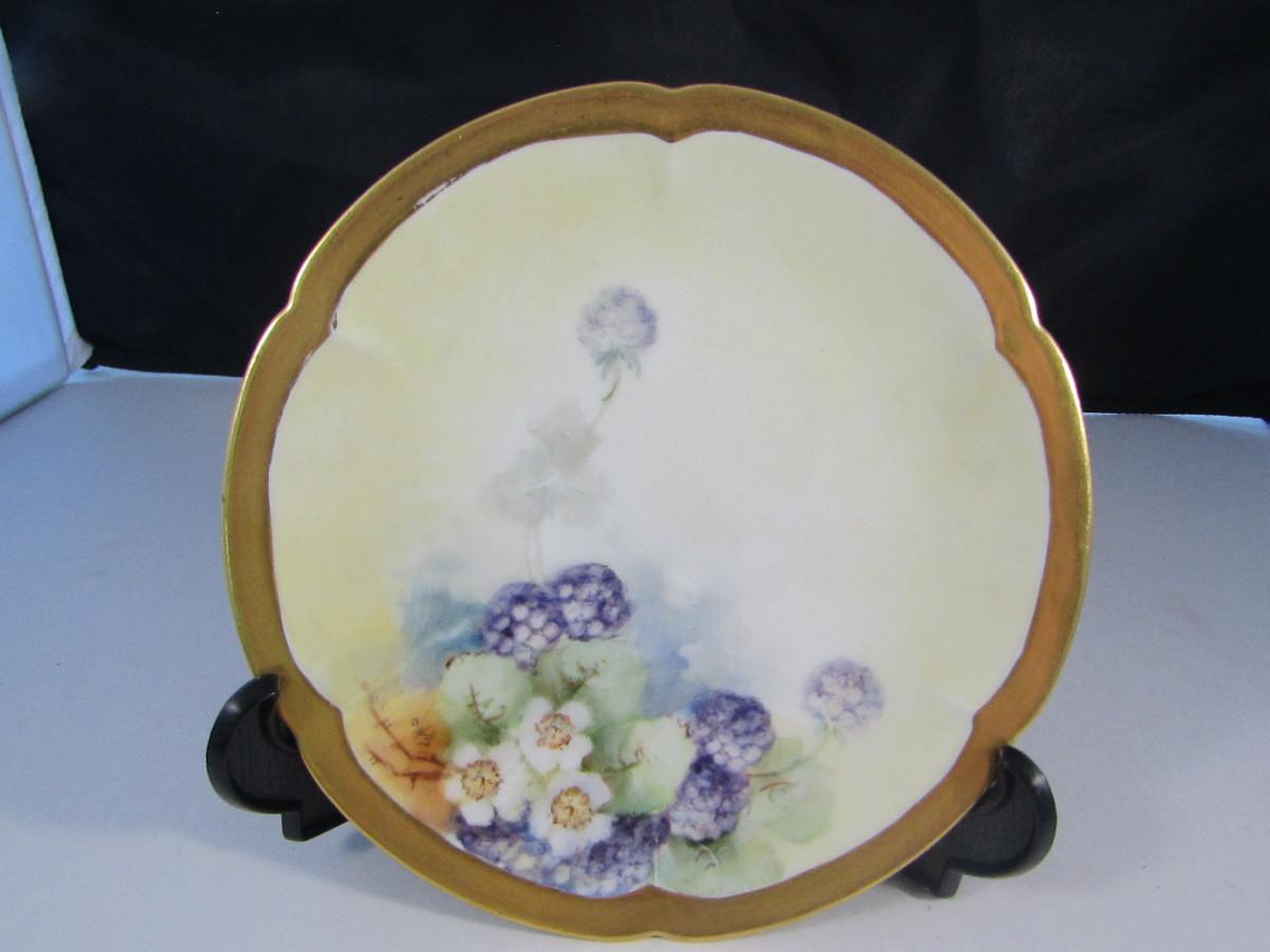 Set of Six Haviland Limoges Plates- Hand Painted Blackberry Design with Gilt Edge- 6 1/2" in Diameter