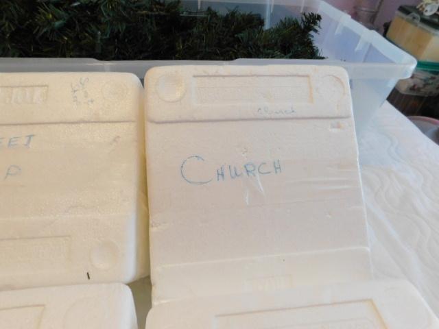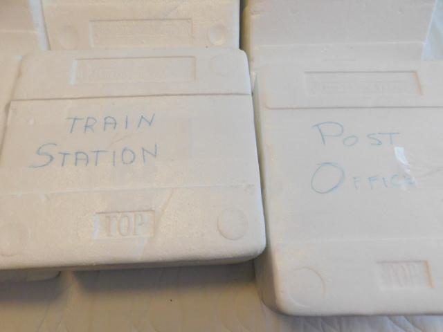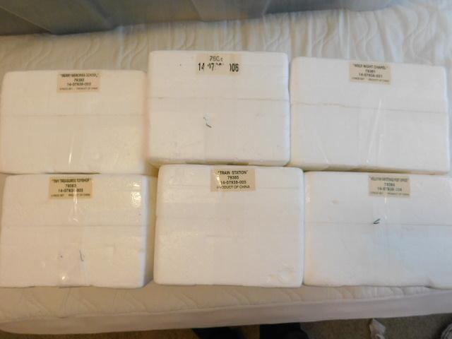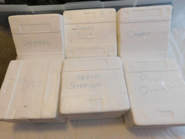 Set of Six Hawthorne Village Christmas Buildings Church, Toy Store, Post Office, Train Station, School, Sweet Shop
