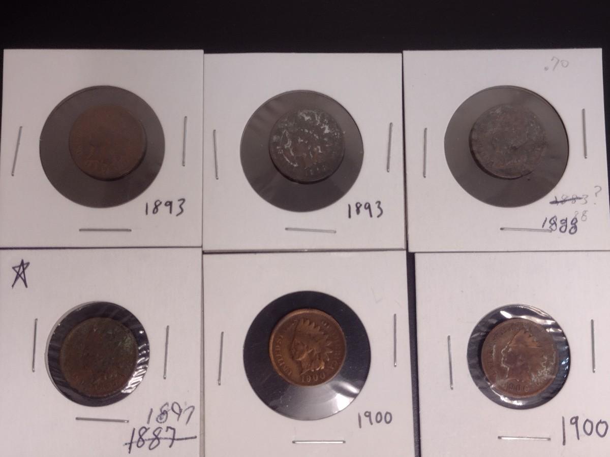 Set of Six Indian Head Pennies Various Dates Circulated Condition (30)