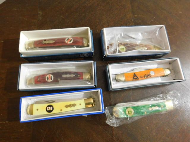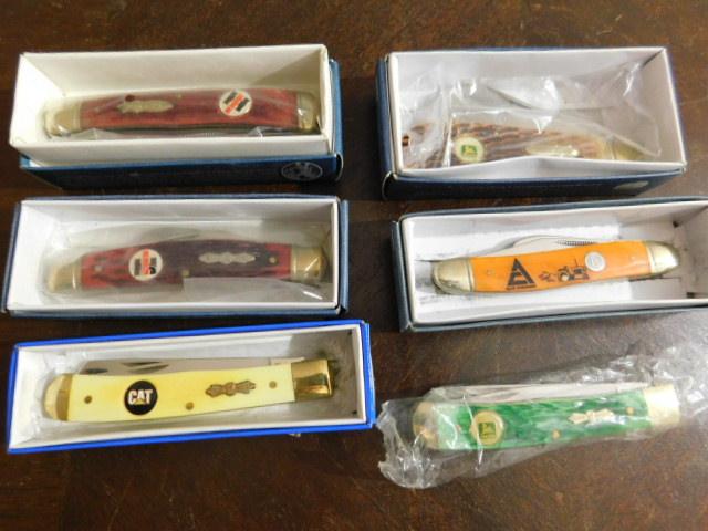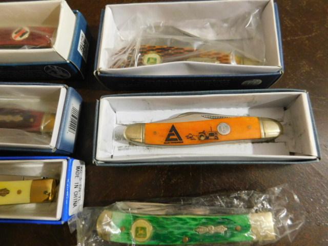 Set of Six Logo Pocket Knives Including John Deere, International, Allis Chalmers, Etc
